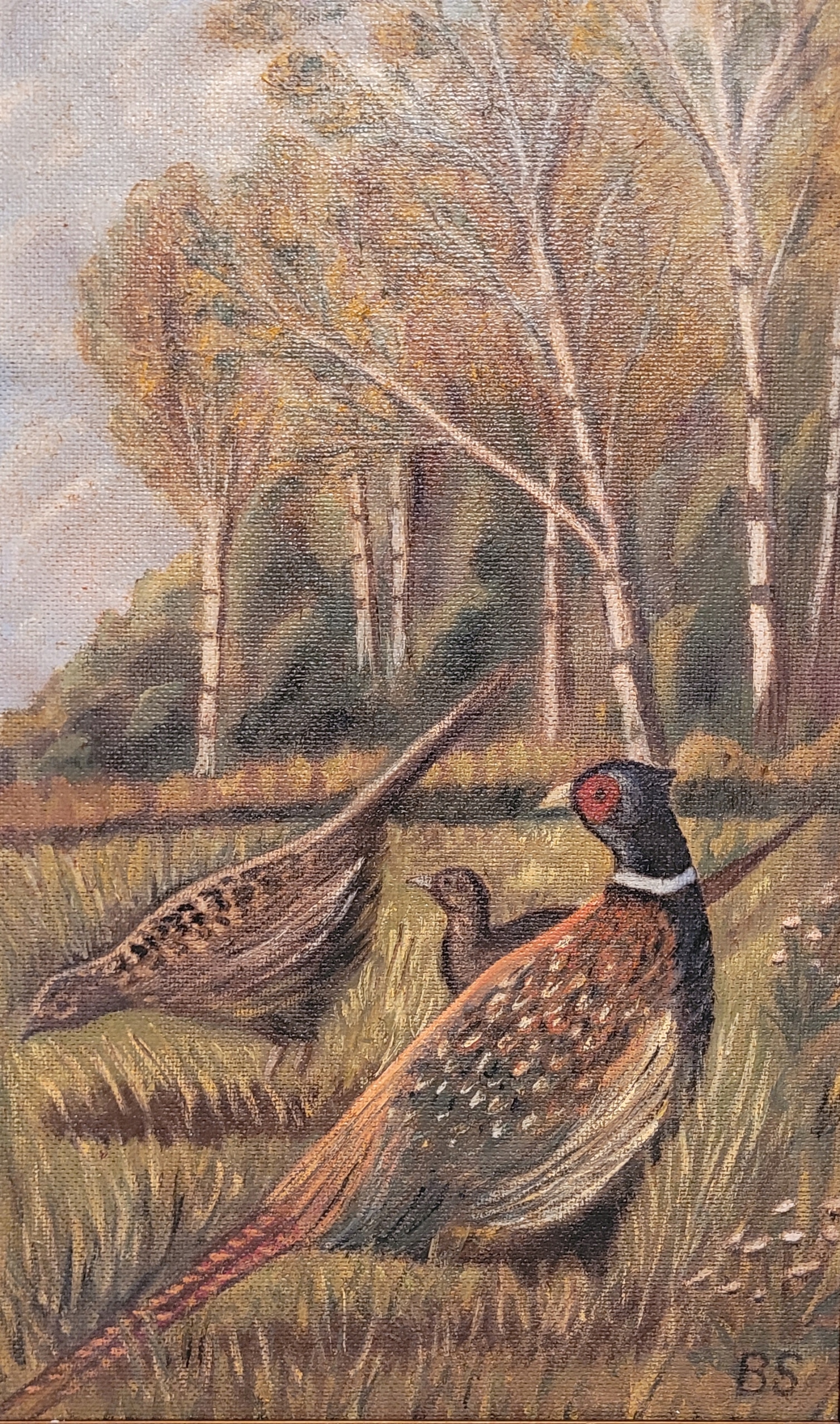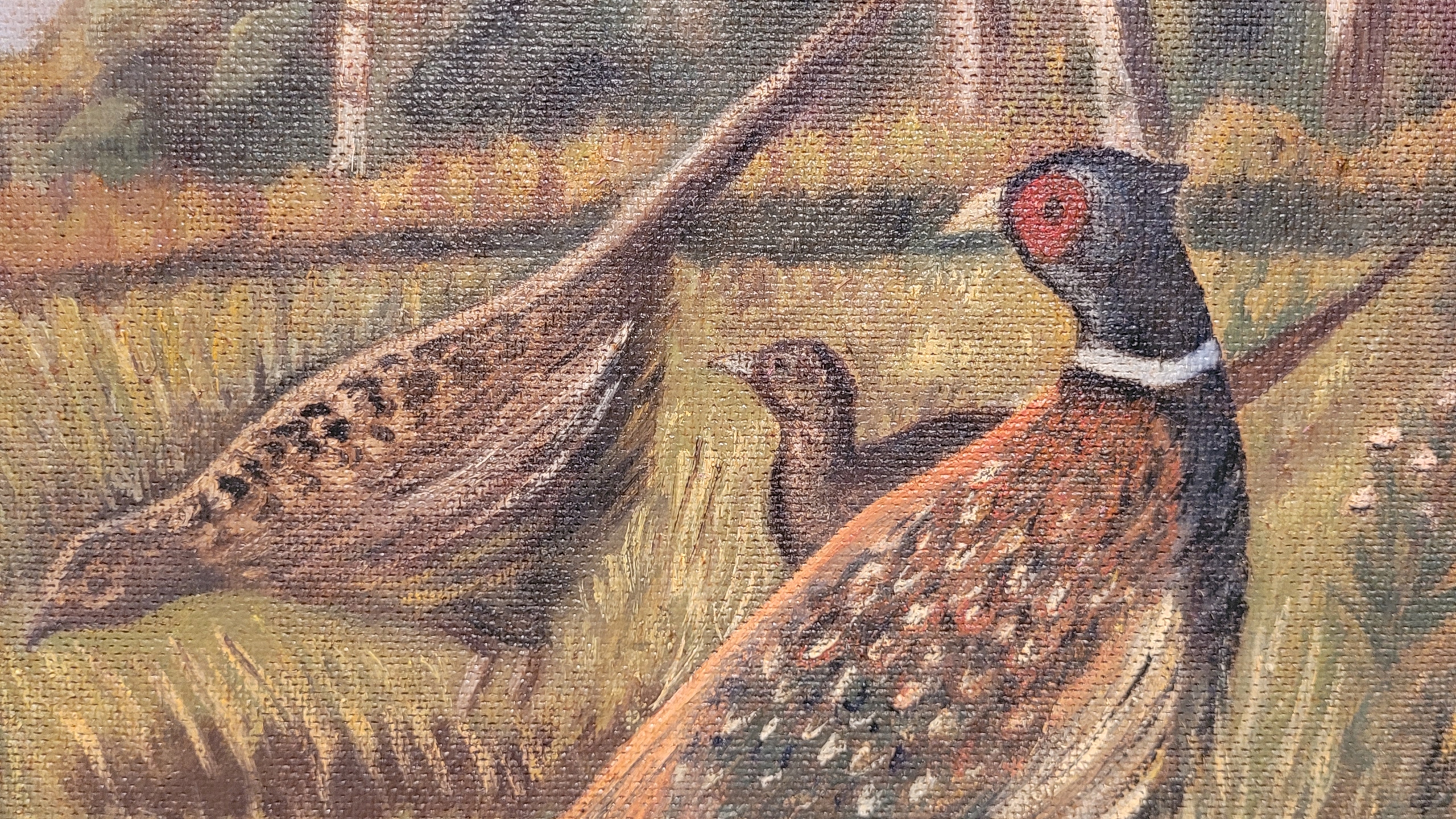 Предмет продажи — красивая старинная картина маслом «ФАЗАНЫ».