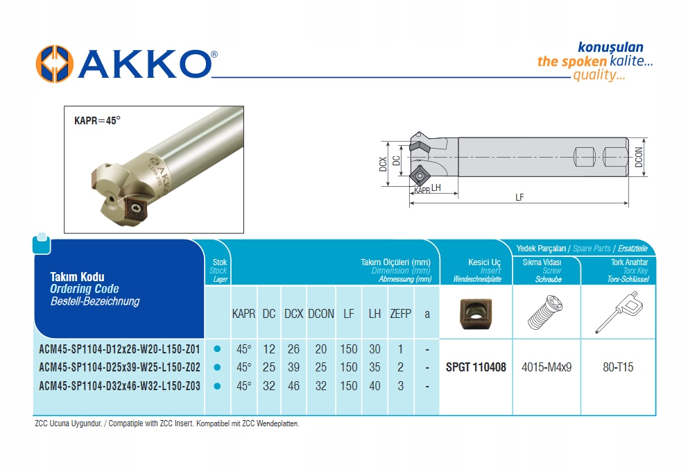 Зенковка с фаской 45 градусов ACM45 D12X26 SPMT 11 AKKO