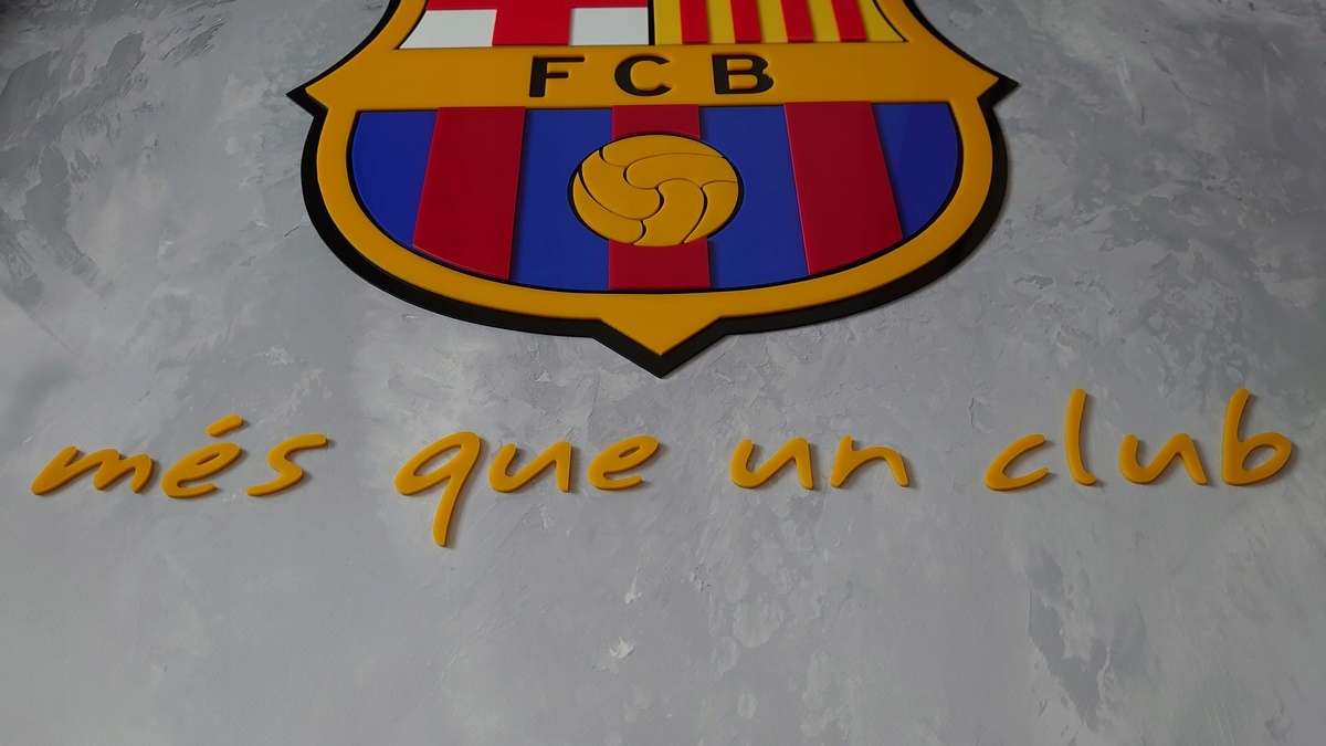 Клубное герб fc barcelona + надпись Mes Que un Club из цветного пластика