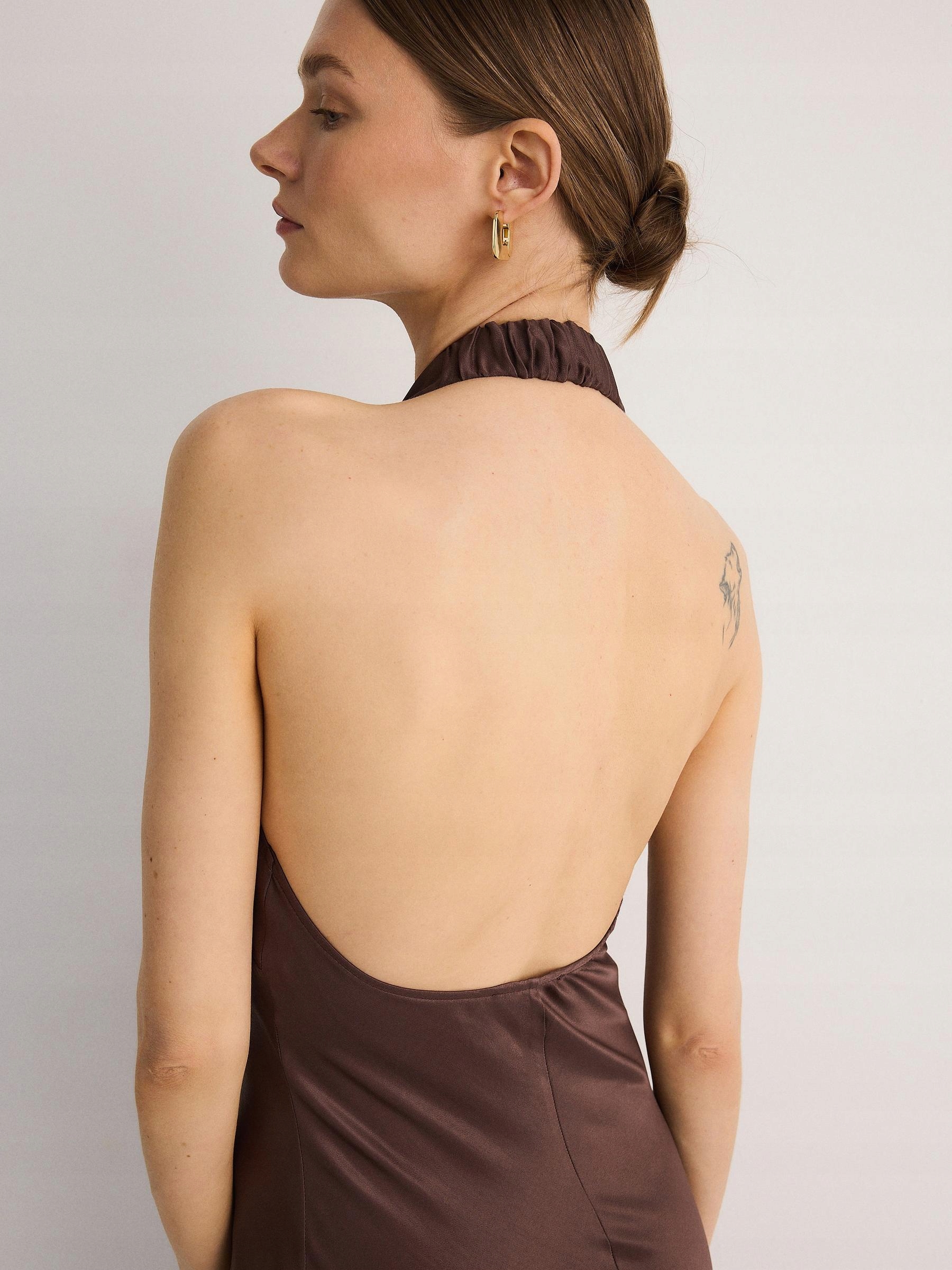 FC33117 SUKIENKA SATYNOWA MAXI WIĄZANY DEKOLT ODKRYTE PLECY L