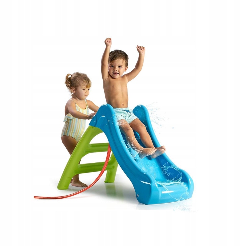 Горка First Slide от испанского бренда FEBER для детей от 1 года. Идеально подходит в качестве первой горки ребенка. Функция 2 в 1: вы можете подсоединить садовый шланг к горке и получить водную игровую площадку, идеально подходящую для жарких дней. Легко складывается и хранится в гараже. Изделие изготовлено из прочного и стойкого пластика, покрытого АНТИУФ-покрытием, защищающим от выцветания.