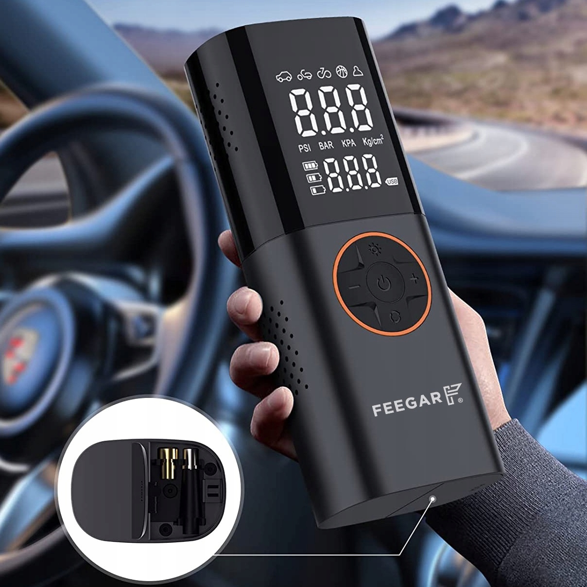 - Feegar Expert идеально подходит для: велосипедной поездки, кемпинга, бассейна , поездка в отпуск, прогулкав горы, но он также отлично подойдет и дома. Большой аккумулятор емкостью 7800 мАч и быстрая зарядка обеспечивают длительное и безопасное использование этого удивительного компрессора.