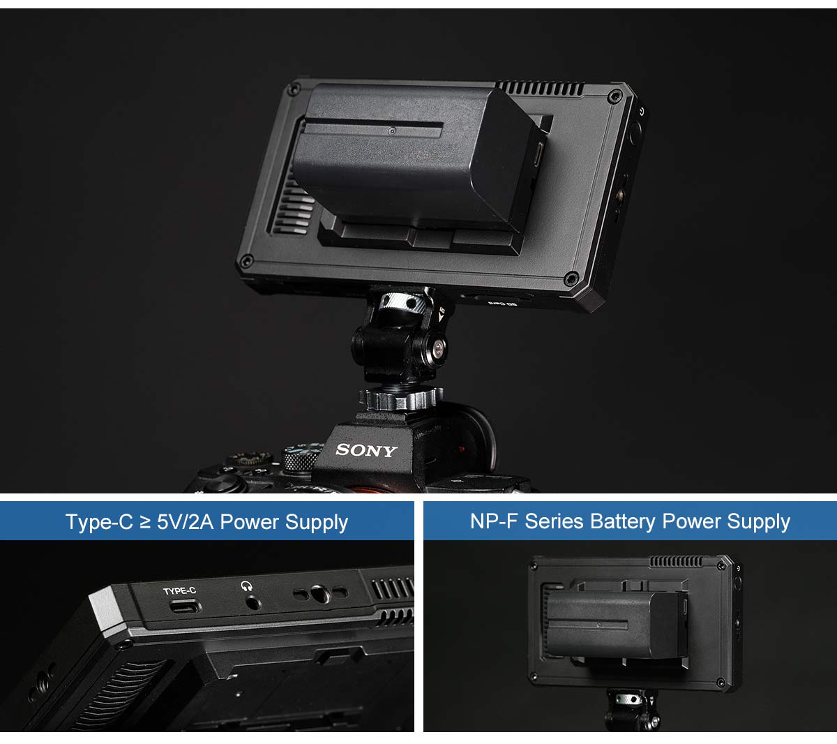 - Гибкий источник питания — USB-C 5 В/2 А, совместимость с батареями NP-F (например, F750)