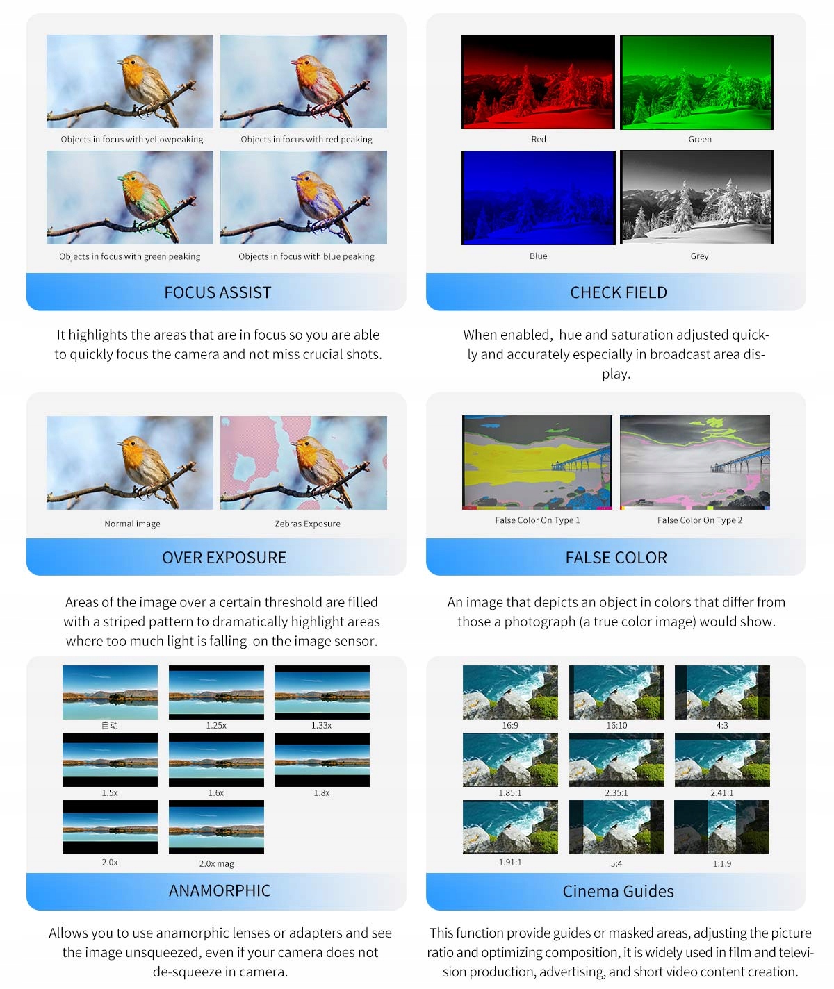 Расширенные функции, такие как помощь при фокусировке, форма волны, вектороскоп, гистограмма и предварительный просмотр фазы и уровня звука, позволяют авторам-одиночкам достигать студийной точности в каждом кадре. Поддержка HDMI 4K 60 Гц с минимальной задержкой гарантирует плавное изображение без двоения.