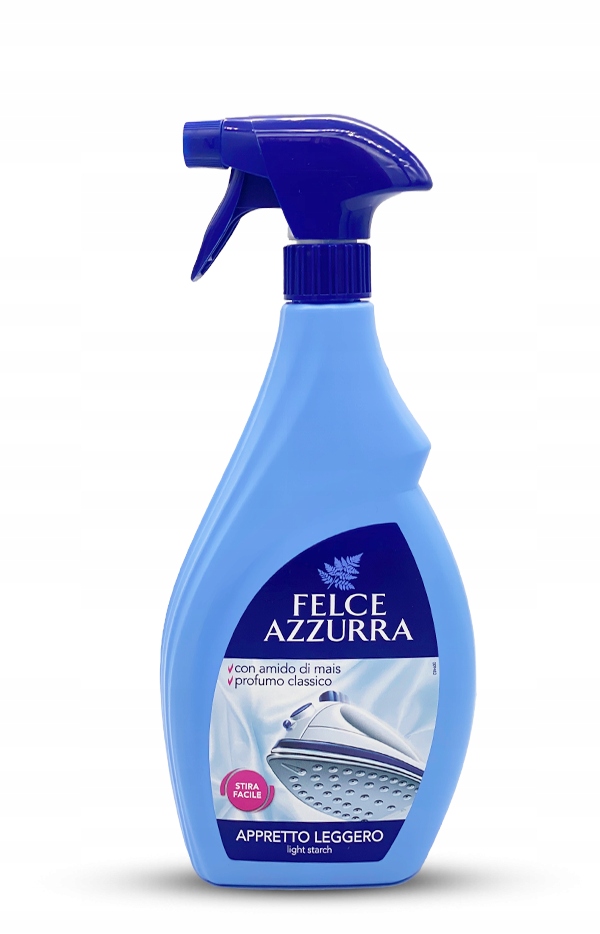 Парфюмированная жидкость для глажки Felce Azzurra на основе кукурузного крахмала. Его богатая формула придает тканям желаемую мягкость и свежий аромат. Жидкость глубоко проникает в структуру материала, благодаря чему глажка становится намного быстрее и проще.