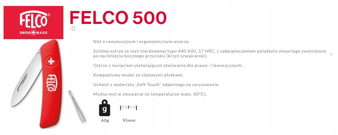 Прочный карманный нож Felco 500 - это сбалансированное сочетание стиля и практичности. Хорошо продуманный разрез облегчает использование карманного ножа как для правых, так и для левша. Прочная лезвия из нержавеющей стали скрыто в эргономической ручке из мягких материалов, благодаря которой удерживать инструмент в вашей руке - это удовольствие. Питезеры облегчают точное занятие, а блокировка позиции открытого лезвия гарантирует безопасность. Замок выпускается после нажатия кнопки со швейцарским крестом у основания лезвия. Разработка привычки ухаживать за чистотой карманного ножа еще проще, потому что вы можете просто мыть его время от времени