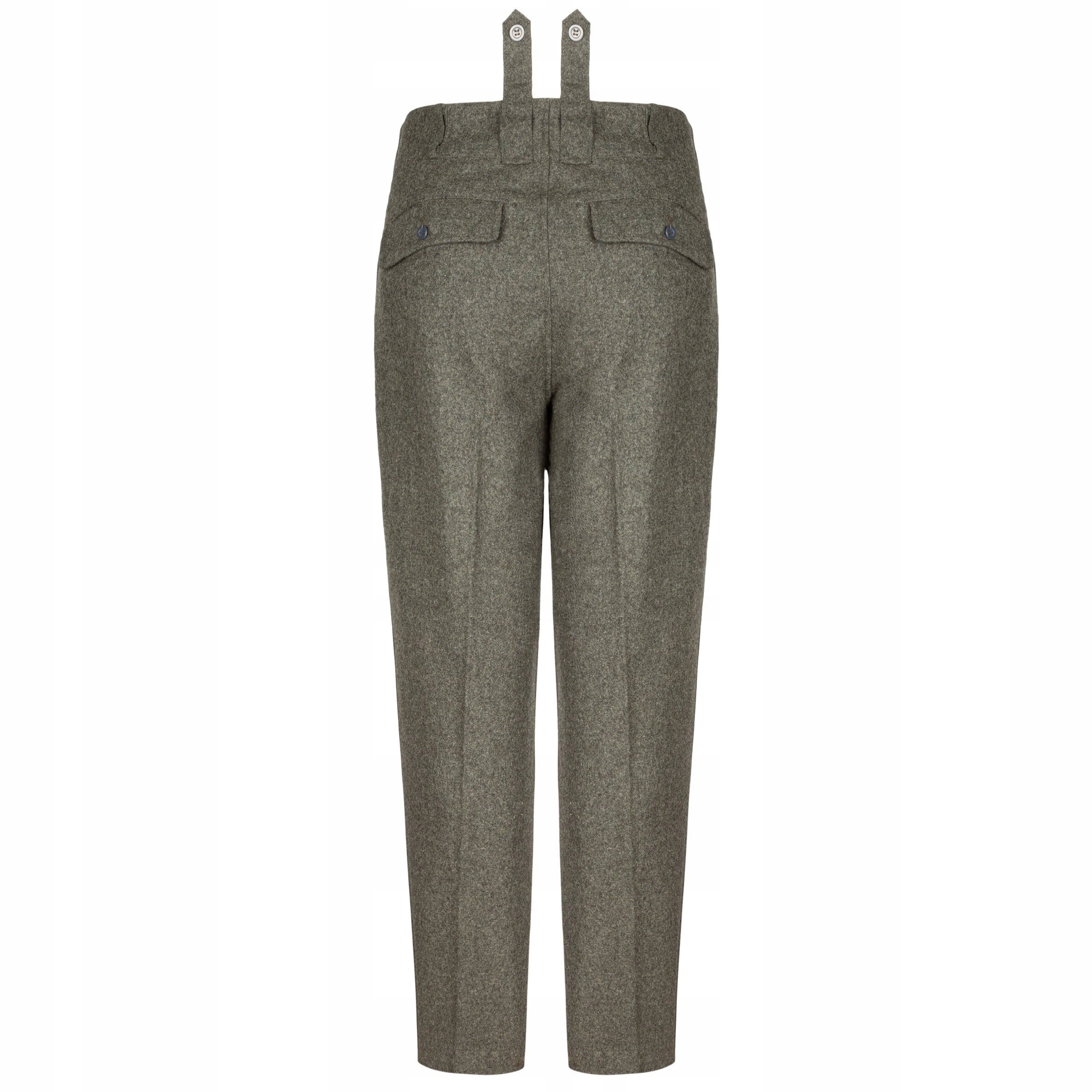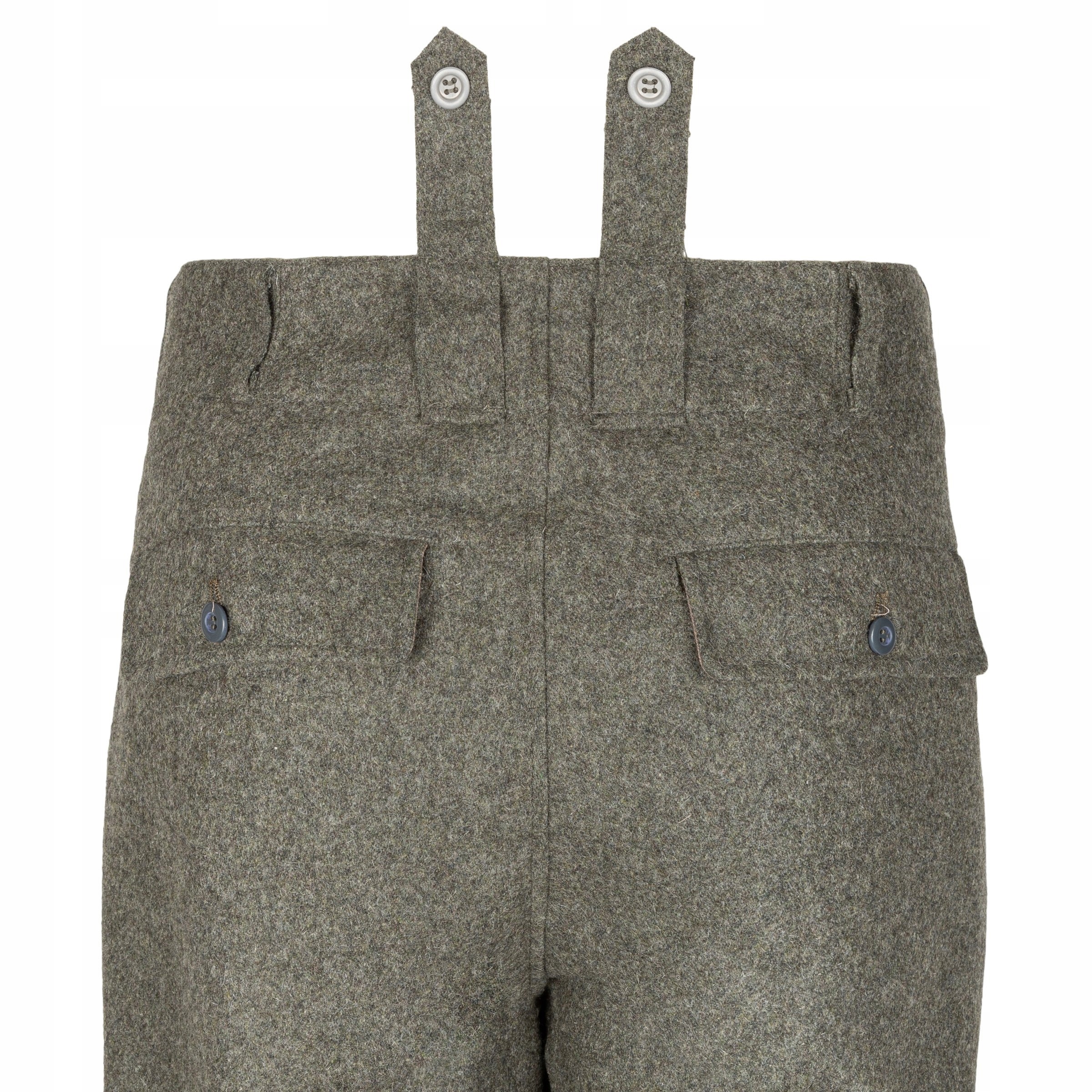 Идеальная копия немецких брюк М44. Брюки изготовлены из ткани прекрасно воссозданного оттенка фельдграу 44-го года, типичного для заключительного периода Второй мировой войны. Брюки выполнены идентично оригинальным, точно воспроизведены вес и фактура материала, пуговицы и петли для ремня. Производство по заказу компании Nestof®.