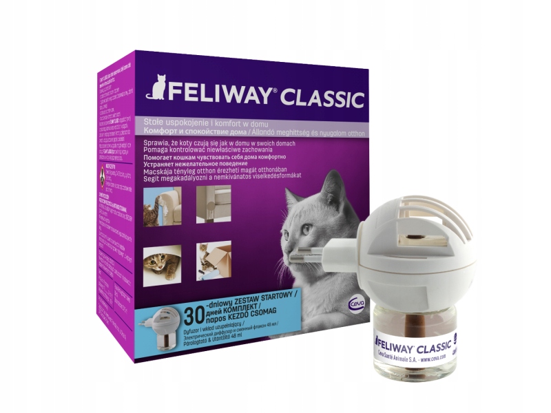 FELIWAY® CLASSIC — это первая линия немедикаментозных продуктов для лечения поведения, связанного со стрессом. Доказано, что он помогает контролировать стресс у кошек от легкой до тяжелой степени. В некоторых случаях может возникнуть необходимость введения дополнительной поведенческой терапии или изменения окружающей среды и обращения за консультацией к ветеринару.
