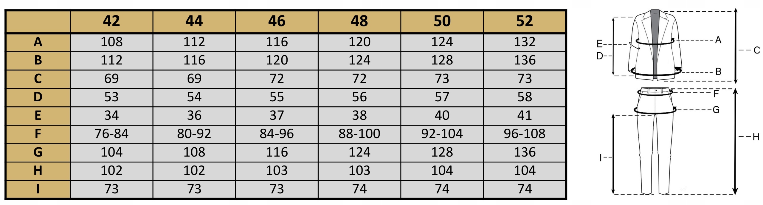 Изделия измеряются в плоском виде, снаружи, застегиваются на пуговицы (молнию). Размеры, указанные в таблице, могут отличаться от реальных размеров изделия на +/- 2 см. Модель на фотографии имеет рост 164 см, размер 42.