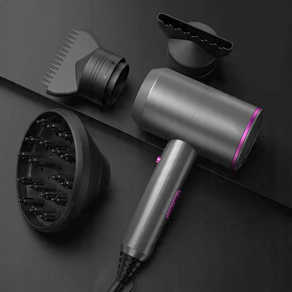 - -Оснащен насадкой для сушки, насадкой для укладки и насадкой для укладки, удобен для сушки прямых волос и укладки вьющихся волос.