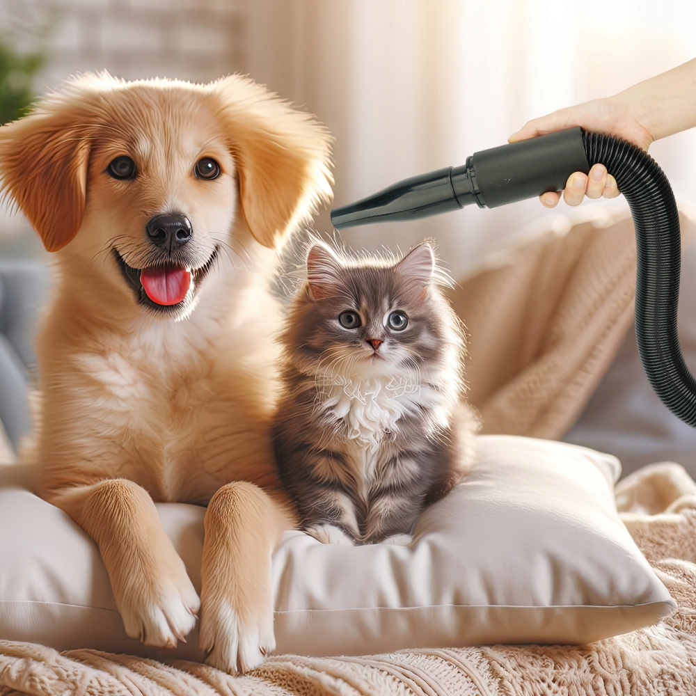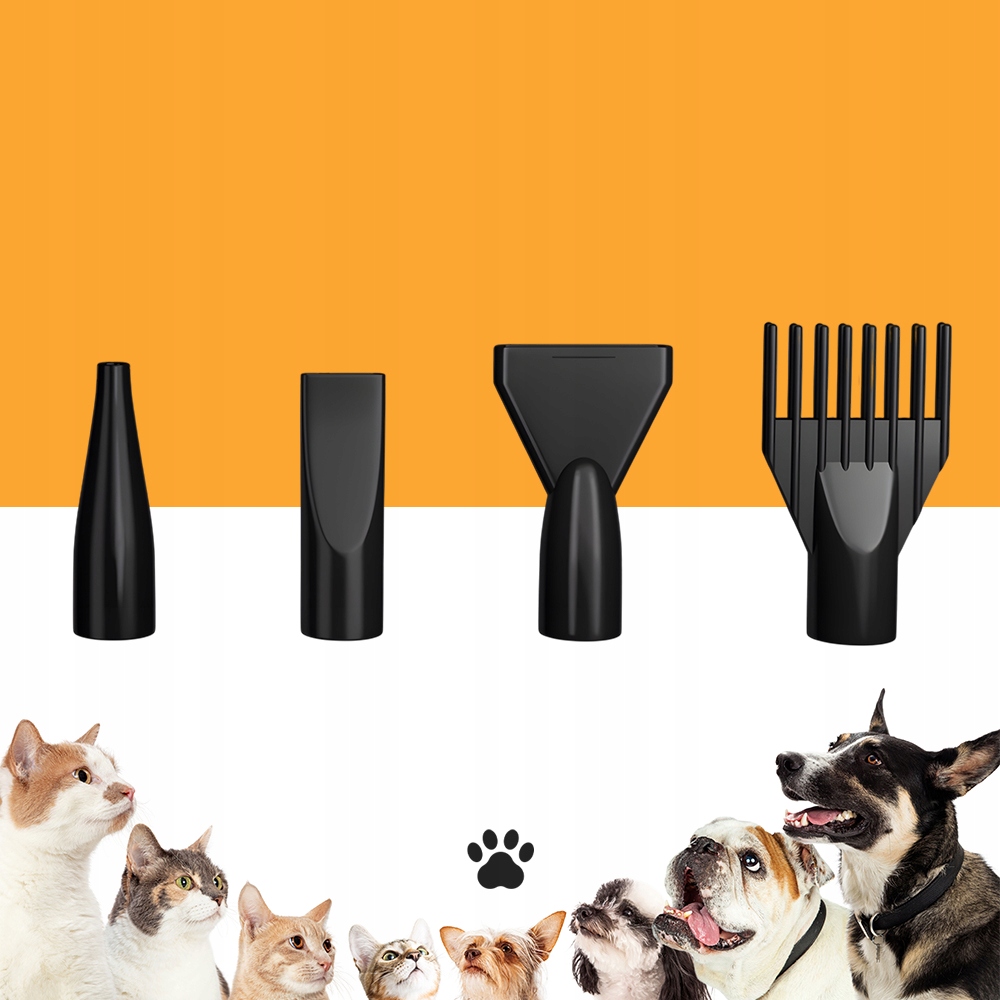 Различные насадки отвечают всем потребностям разных домашних животных. Независимо от того, имеет ли ваш питомец длинную, густую, вьющуюся или короткую шерсть, этот фен для домашних животных поможет укротить его гриву. Массаж, расчесывание, чистка и сушка – все в одном. Утолщенный сложенный шланг фена для собак термостойкий. Он длинный и гибкий, поэтому у вас не возникнет проблем с сушкой собаки, даже если ваш питомец ерзает во время ухода.