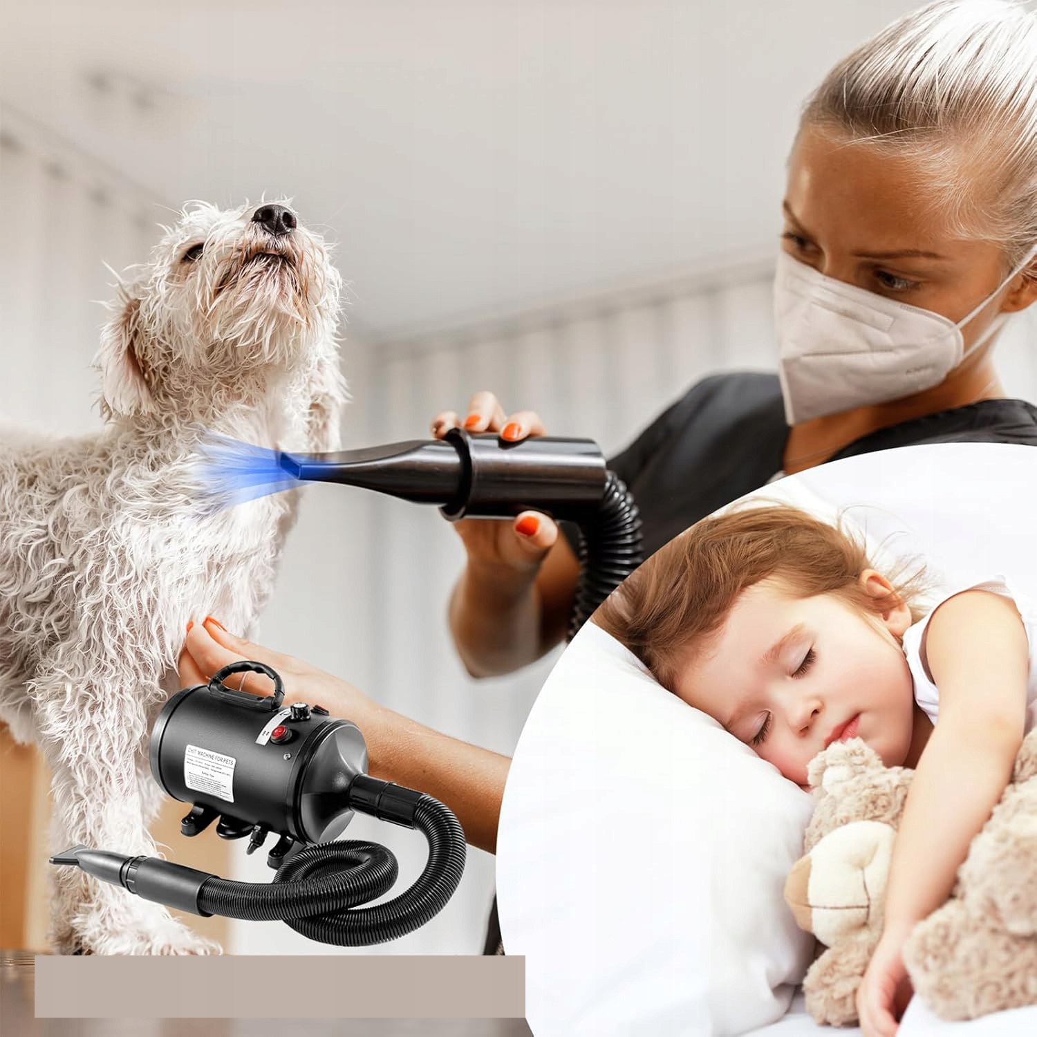 Фен для собак, очень тихий, регулируемая скорость и температура.