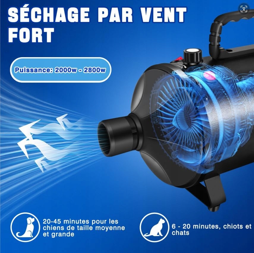 - ✅ 2800 Вт: Эффективный фен с животным оснащен двигателем 2800 Вт, который высыхает животных в течение нескольких минут. В 3 раза сильнее, чем аналогичные сушилки, воздушный поток на 10% выше, чем в случае других одноэтапных сушилок, что помогает эффективно удалить влагу из меха.