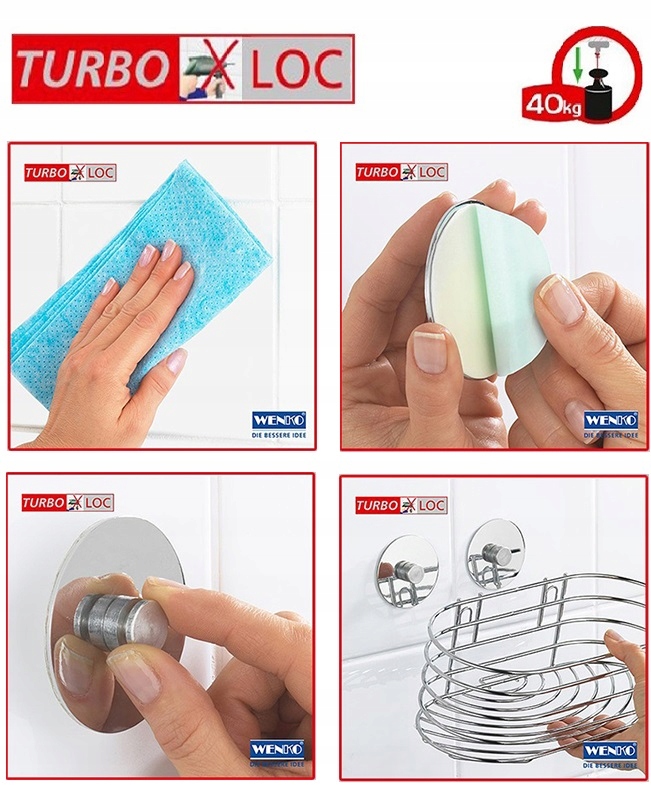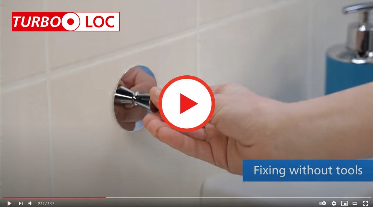 Система TURBO-LOC — это решение, упрощающее установку полок, крючков и множества различных аксессуаров для ванной и кухни.