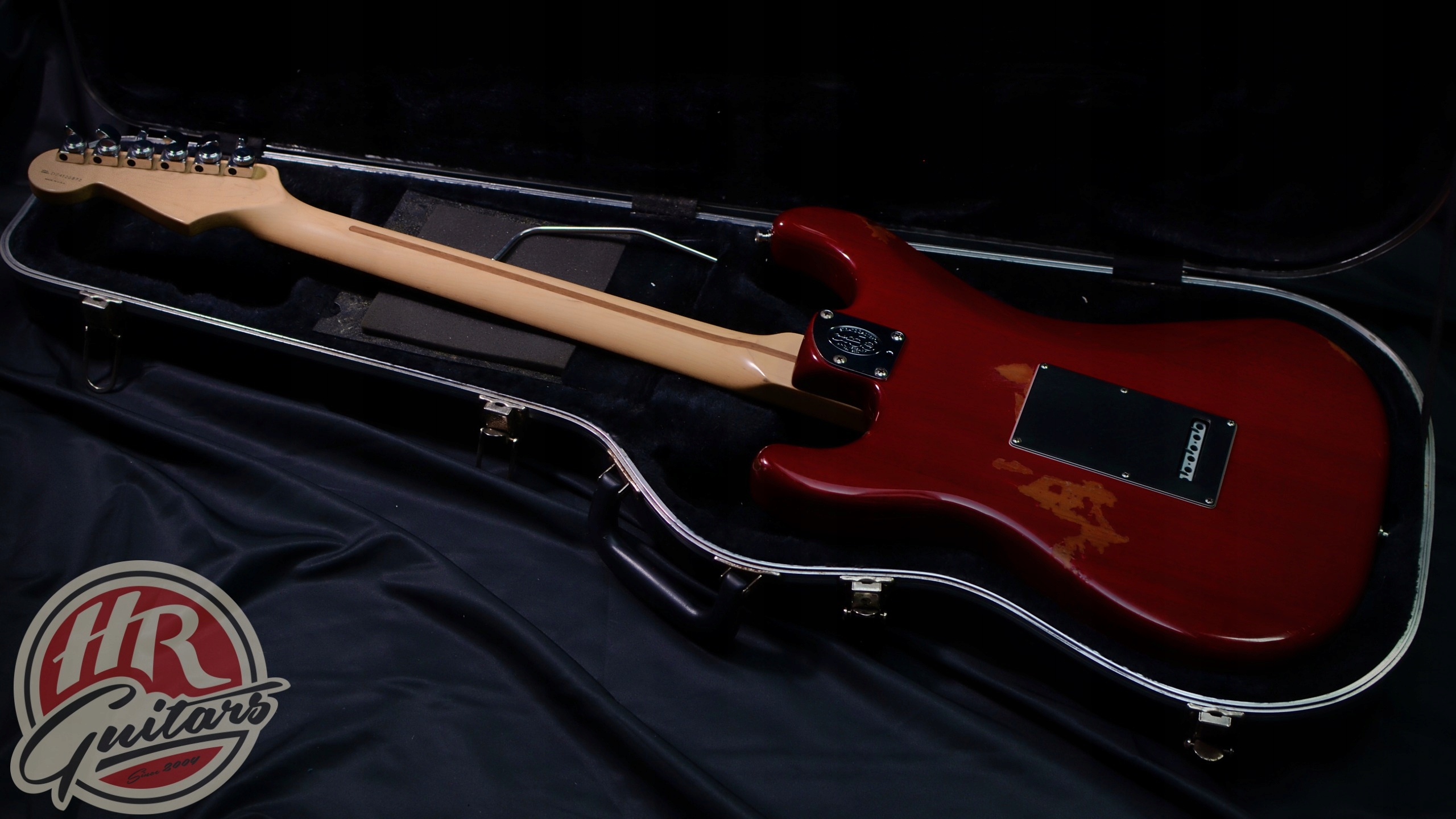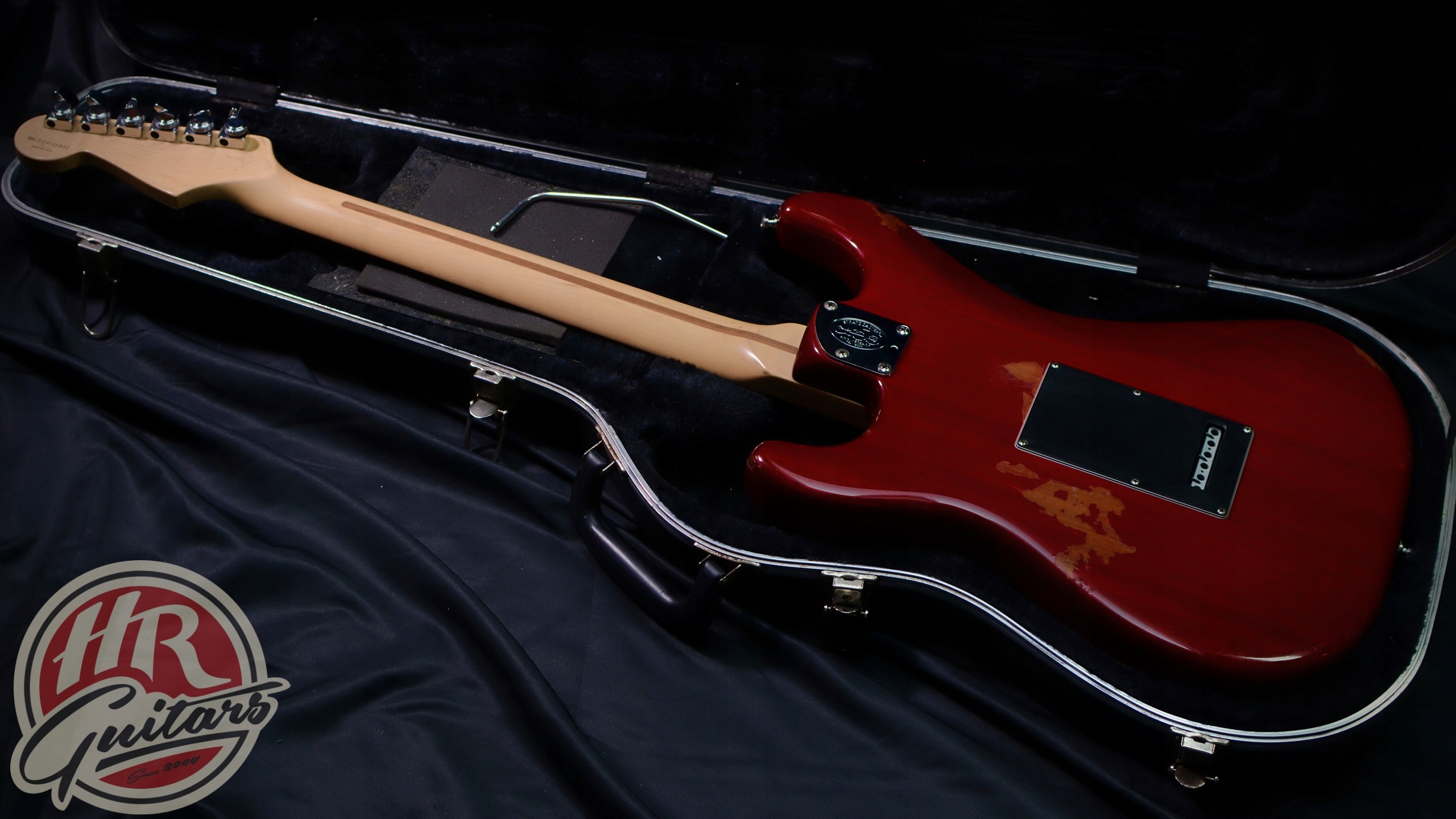 Fender 50th Anniversary American Deluxe Stratocaster Mahogany, производство 2004 года в США, малиново-красный прозрачный цвет, очень редкая версия с корпусом из красного дерева. Гитара технически безупречна, лады хорошие. Визуально как на фотографиях, копия, со множеством вмятин, трещин краски и следов на грифе. Гриф изготовлен из клена с накладкой из палисандра. Звукосниматели — синглы SCN Noiseless, хамбакер Dimondback + заводская система S1. Гитара принадлежала, в частности, двум уважаемым польским гитаристам. В комплект входит чехол. Я настоятельно рекомендую этот инструмент и приглашаю вас его протестировать.