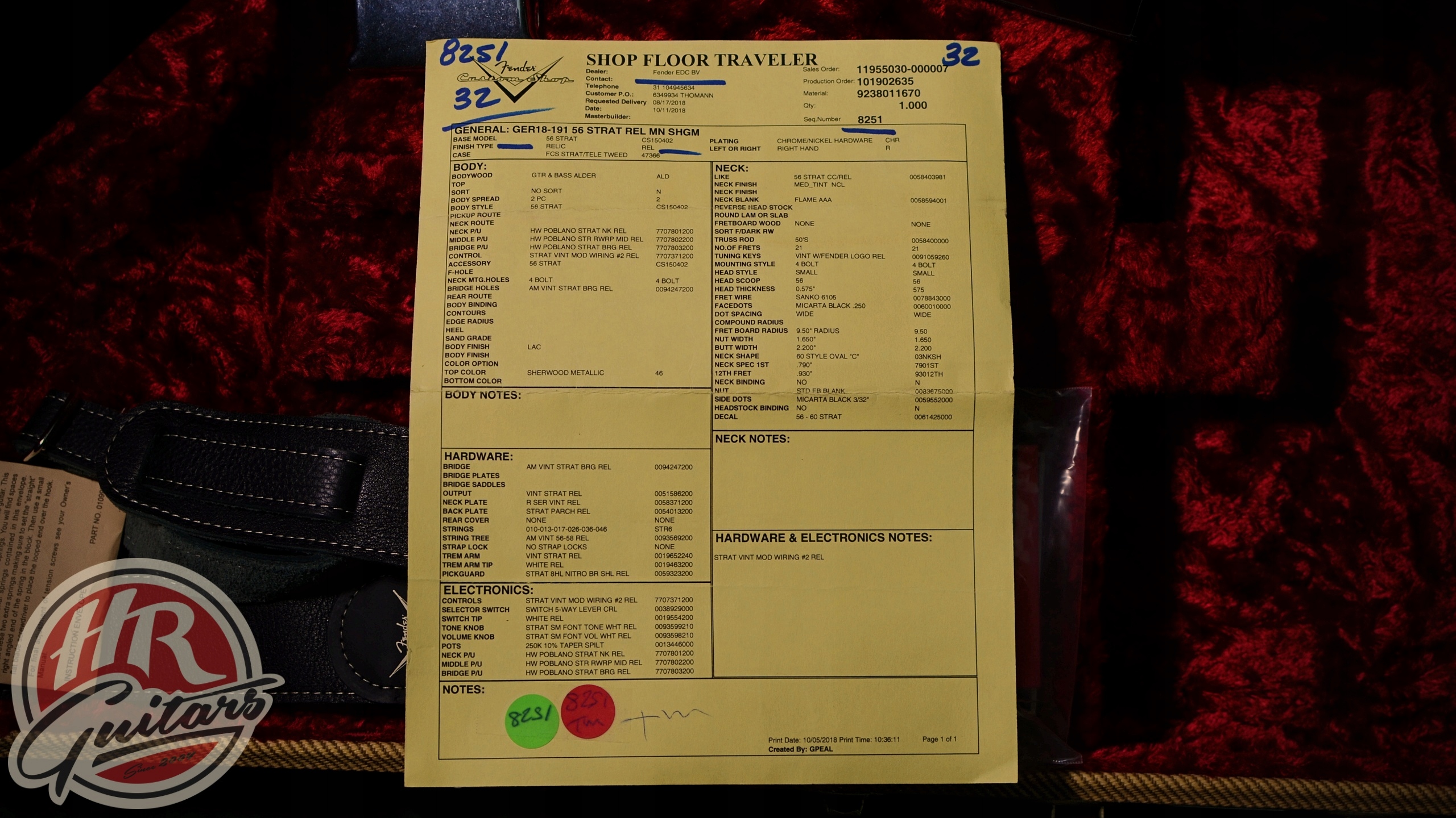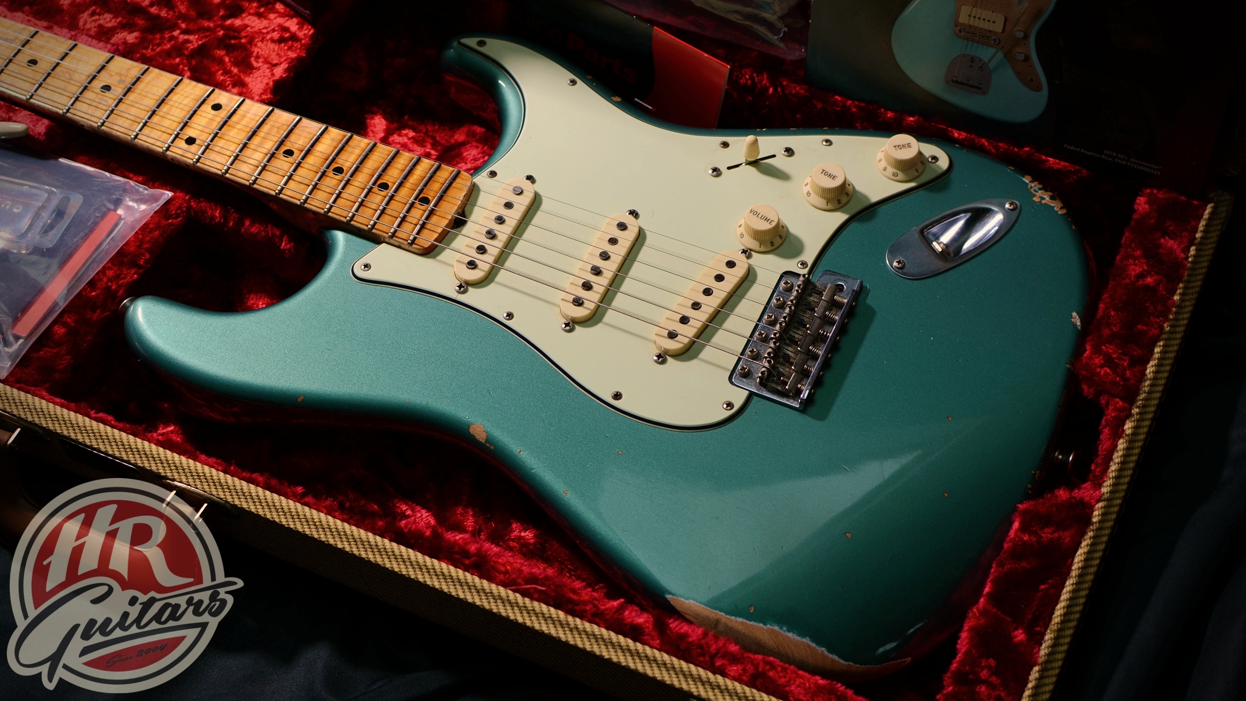 FENDER CUSTOM SHOP 56 Relic Stratocaster, 2018 г., производство США, цвет Шервуд Металлик. Все в нитро отделке. Гитара в хорошем, оригинальном состоянии, за исключением доступа к регулировке штока. В комплекте сертификат, фурнитура производителя и оригинальный футляр. Корпус - ольха, гриф - красивый узорчатый клен ААА. Радиус 9,5". Звукосниматели фантастические Fender CS Poblano, с ручным заводом. Техника оригинальная. Полные характеристики на одной из фотографий. Отличный инструмент, очень рекомендую и приглашаю протестировать.