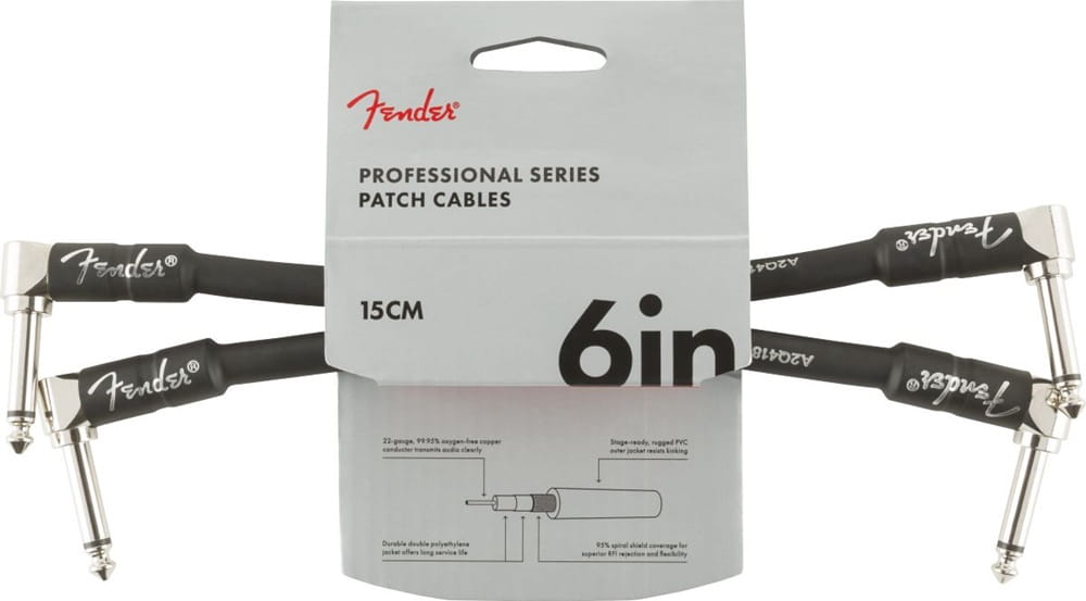 Fender Professional 6 BLK kabel instr 0,15m 2Pack