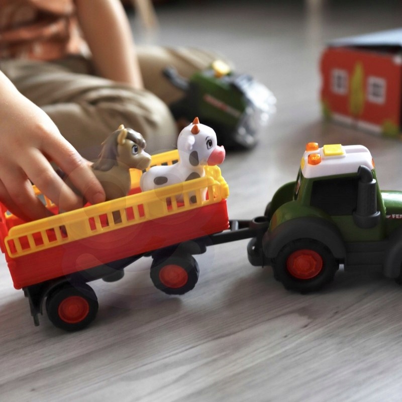 Трактор Fendt с пресс-подборщиком, животными, прицепом и сараем идеально подходит для самых маленьких детей и наверняка порадует каждого поклонника. сельскохозяйственной техники.