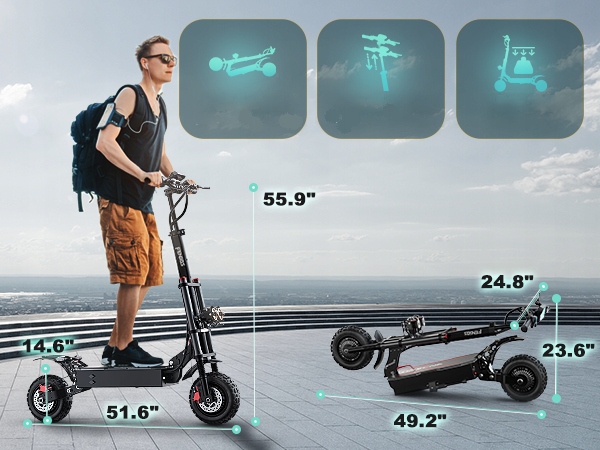 Ощутите превосходный комфорт благодаря двойной системе подвески, работающей в гармонии с 11-дюймовыми противоскользящими шинами. Гидравлические дисковые тормоза профессионального уровня на передних и задних колесах обеспечивают надежное торможение на высоких скоростях, обеспечивая безопасность и контроль в любых условиях езды.