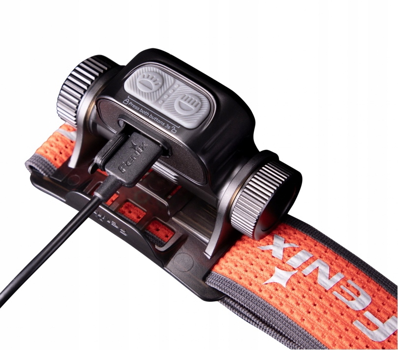 Fenix HM65R-T V2. В модели 0 используется запатентованная система регулировки ремешка Fit System, которая позволяет регулировать окружность ремешка одной рукой. Механизм приводится в действие вращающимся диском, что позволяет легко укорачивать или увеличивать окружность ремня даже во время пробежки. Расширенный ремешок обеспечивает удобство ношения фонаря и эффективно отводит пот во время физической активности.
