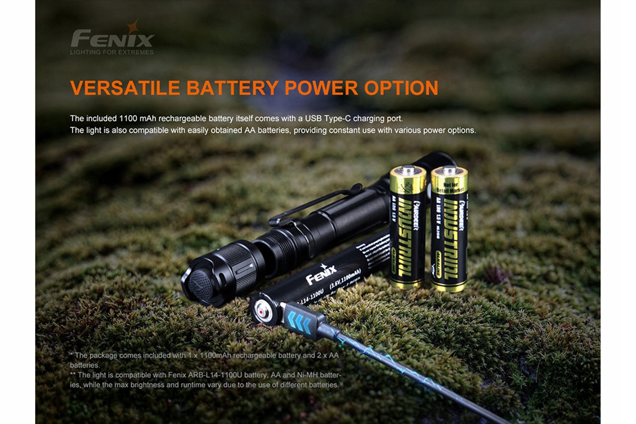 Сильный светодиод luminus требует соответствующего источника питания - по этой причине Fenix поместил батарею 14500 , заряженный портом USB -C ячейки. Тем не менее, если ситуация нашла нас, в которой мы не могли бы пополнить устройство, фонарик также может быть оснащен батареями AA, доступными почти в каждом магазине . Однако следует помнить, что их использование уменьшает максимальное значение светового потока до 350 люменов