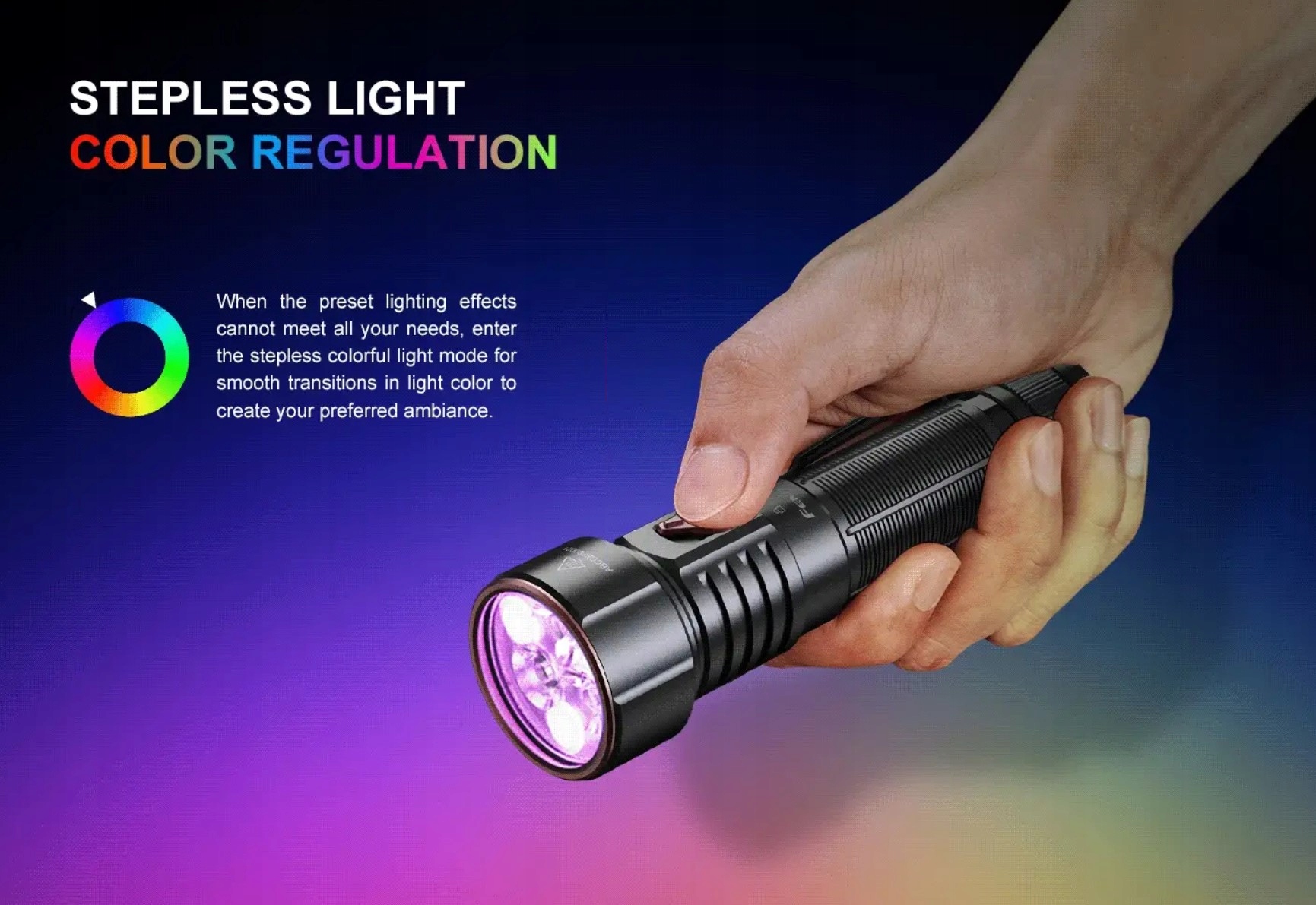 Благодаря новому режиму цветного света вы можете выбрать именно тот оттенок, который вам нужен — от теплого, расслабляющего света для чтения, до насыщенной, разноцветной атмосферы для вечернего похода. Входящий в комплект диффузор всего за несколько секунд превращает фонарик в декоративную лампу или функциональный светильник для палатки. А если вам нужен профессиональный эффект, крепление для штатива с резьбой ¼" обеспечивает стабильное и не требующее обслуживания позиционирование фонаря в полевых условиях.