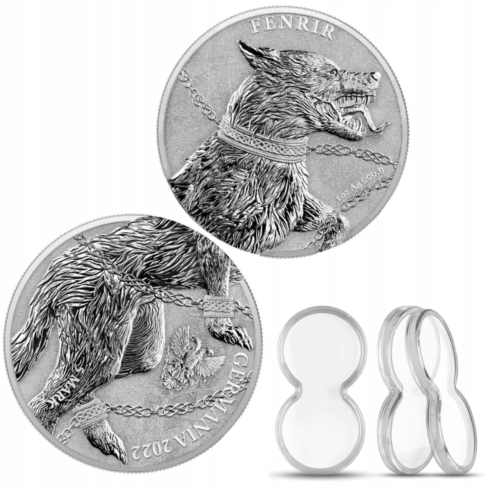 Фенрир Германия зверей 2 x 1 Серебряная унция 2022 + дуэт Capsel Duo