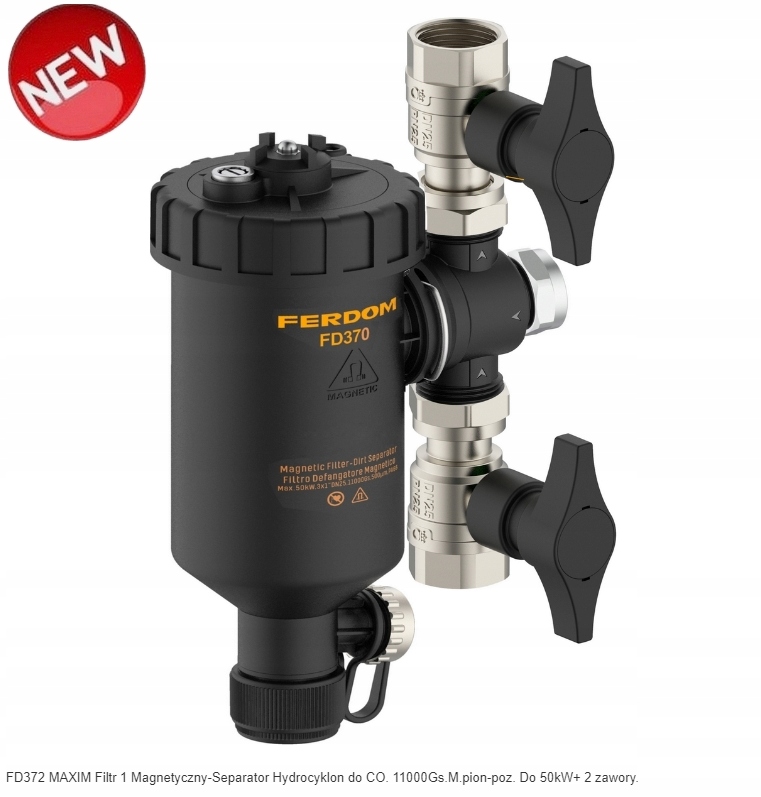 MAXIM FD372 Filter 1" (DN25) Гидроциклон с магнитным сепаратором для систем ЧТО. , Солнечные батареи, Тепловые насосы и т. д. Клапаны: 2 шт. 1-дюймовые шаровые краны с винтовым соединением. - Мощный магнит, установленный сверху, мощностью 11 000 Гс. Можно вытащить без слива воды из фильтра.
