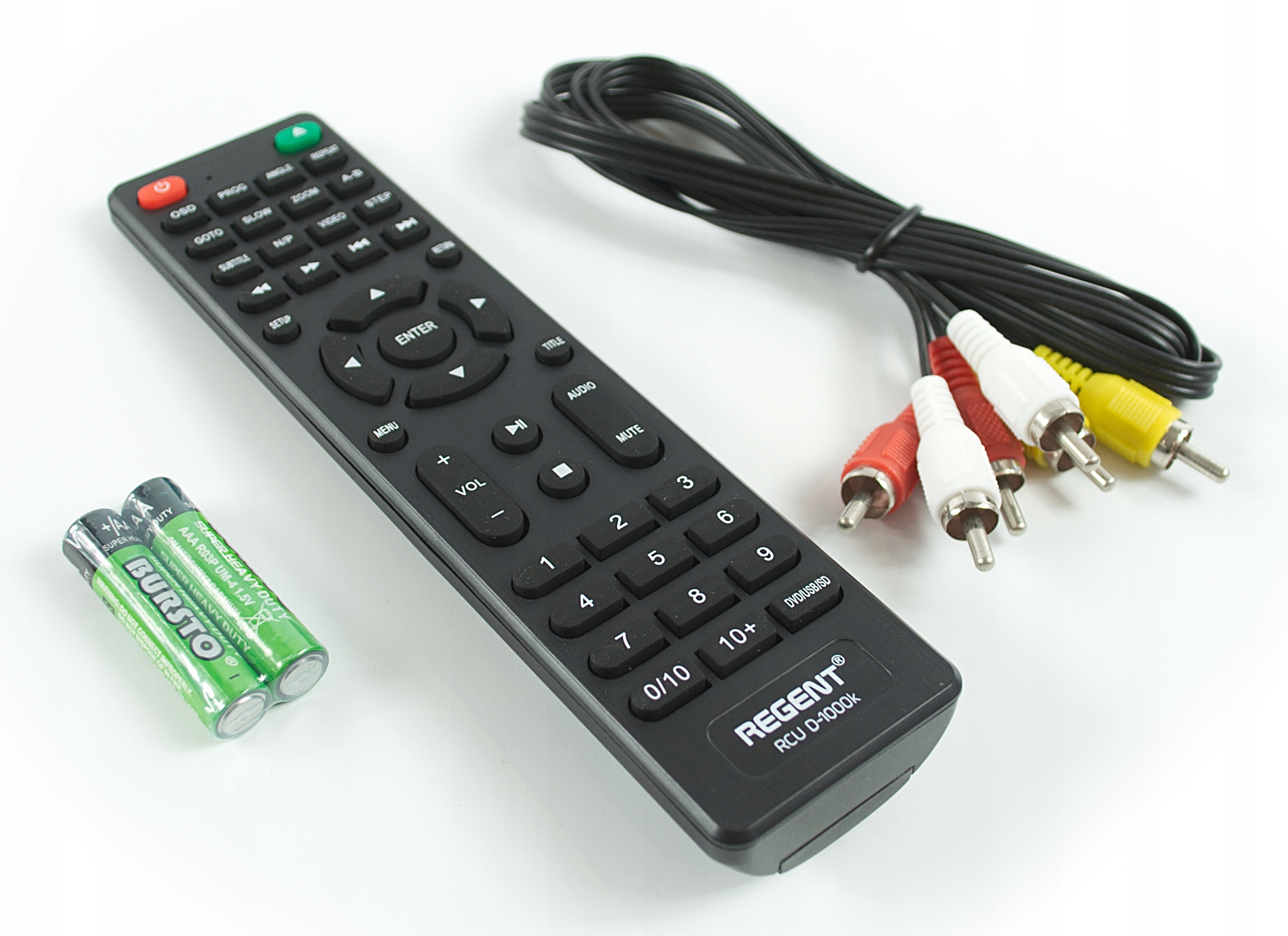 В комплект плеера помимо пульта входит AV-кабель для подключения к телевизору и батарейки для пульт дистанционного управления.