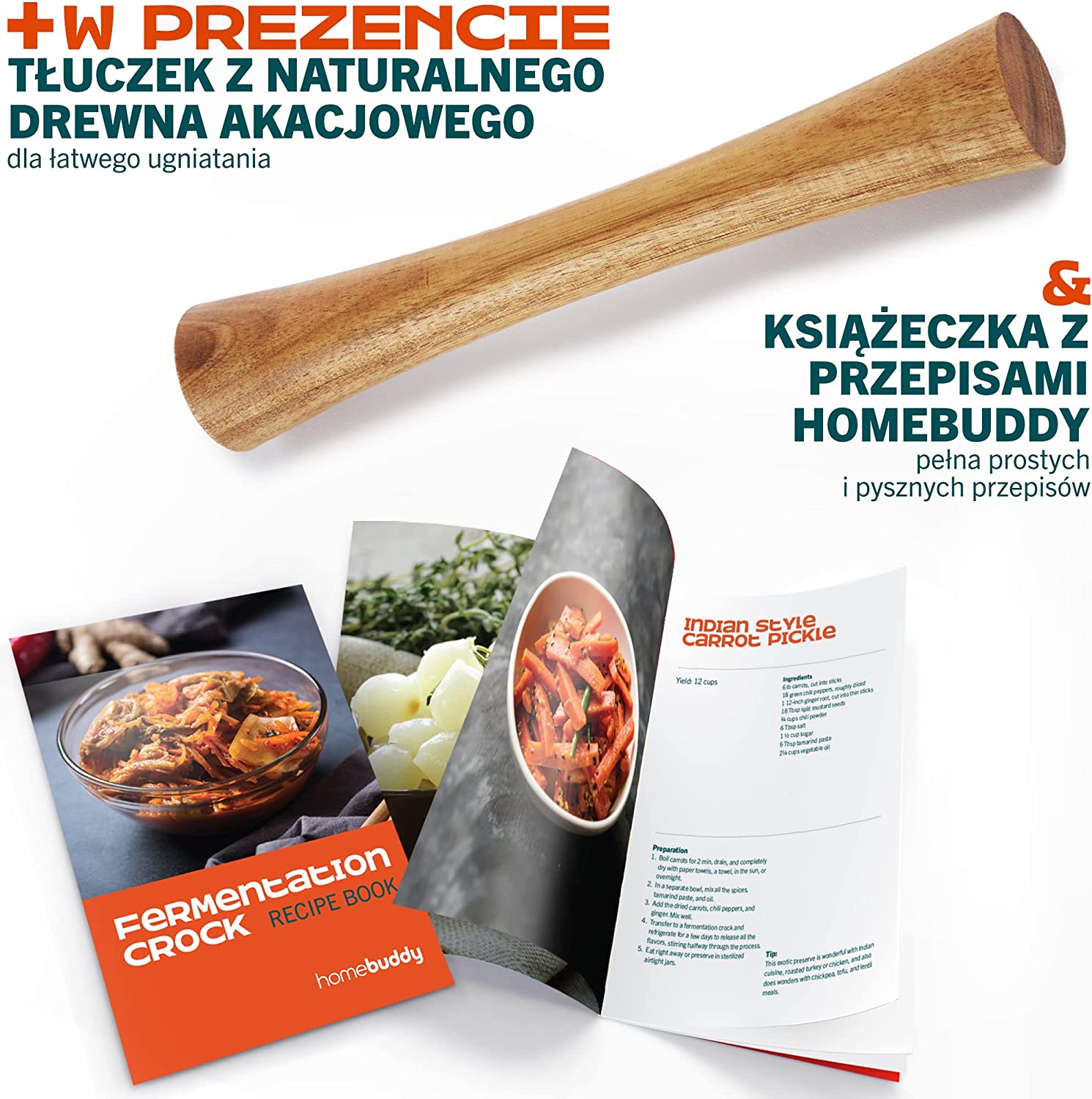 БЕСПЛАТНЫЙ ПЕСТИК И РЕЦЕПТЫ! Входящий в комплект пестик из натуральной древесины акации с широким основанием превратит растирание твердой капусты в бродильном котле в детскую игру. А наша бесплатная книга рецептов обязательно вдохновит как новичков, так и профессионалов в области ферментации!