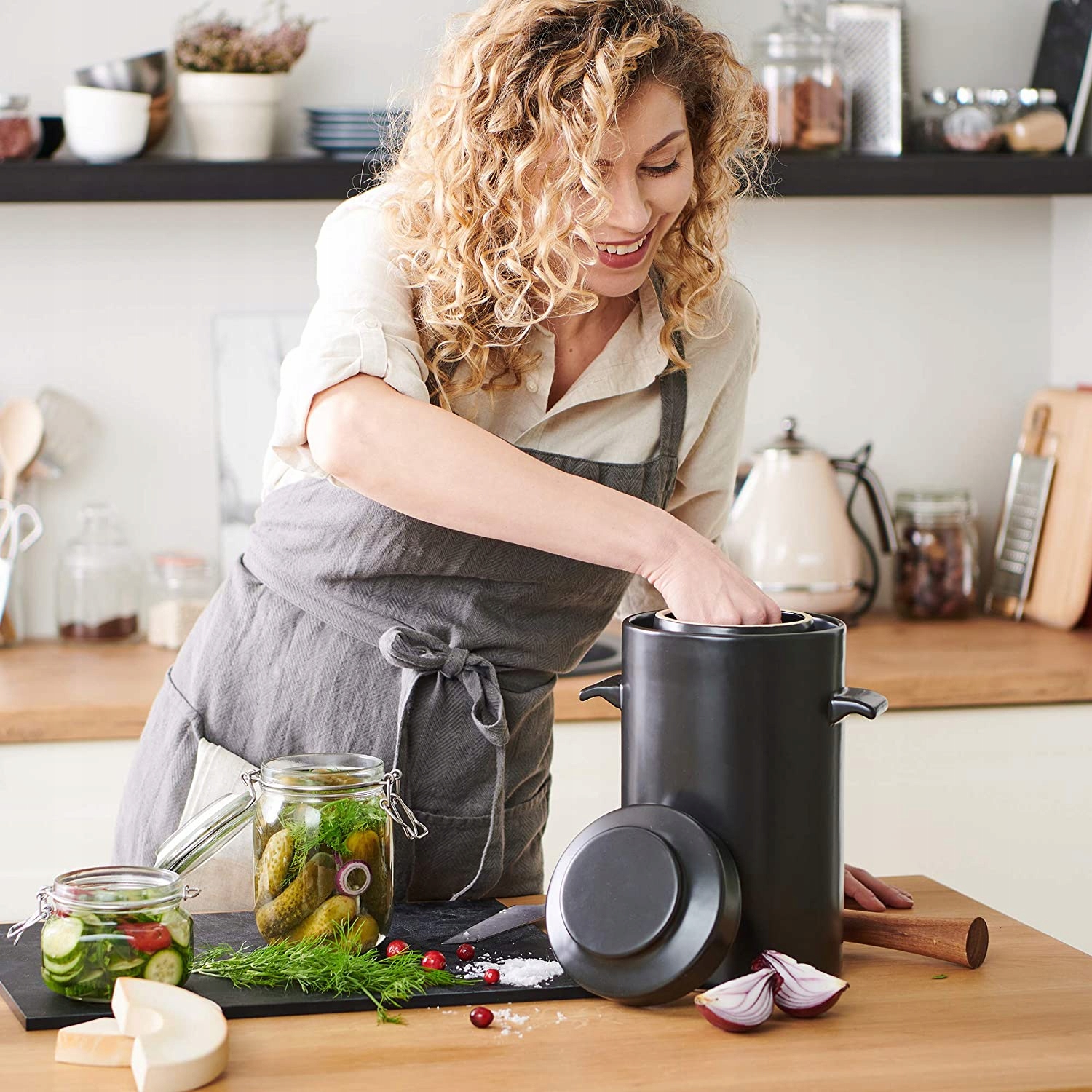 Емкость для брожения HomeBuddy с грузиками емкостью 3,8 литра - Керамическая кастрюля для маринования капусты с грузиками для брожения и крышкой - работает как кастрюля для онгги кимчи, кастрюля для маринования или кастрюля для закваски