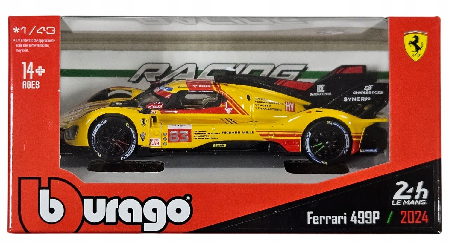 Коллекционная модель автомобиля Ferrari 499P 3.0L Turbo V6 Team AF Corse LMH FIA Hypercar #83 HyperCar - Kubica, Shwartzman, Ye 2024 года в масштабе 1/43 производства Bburago
