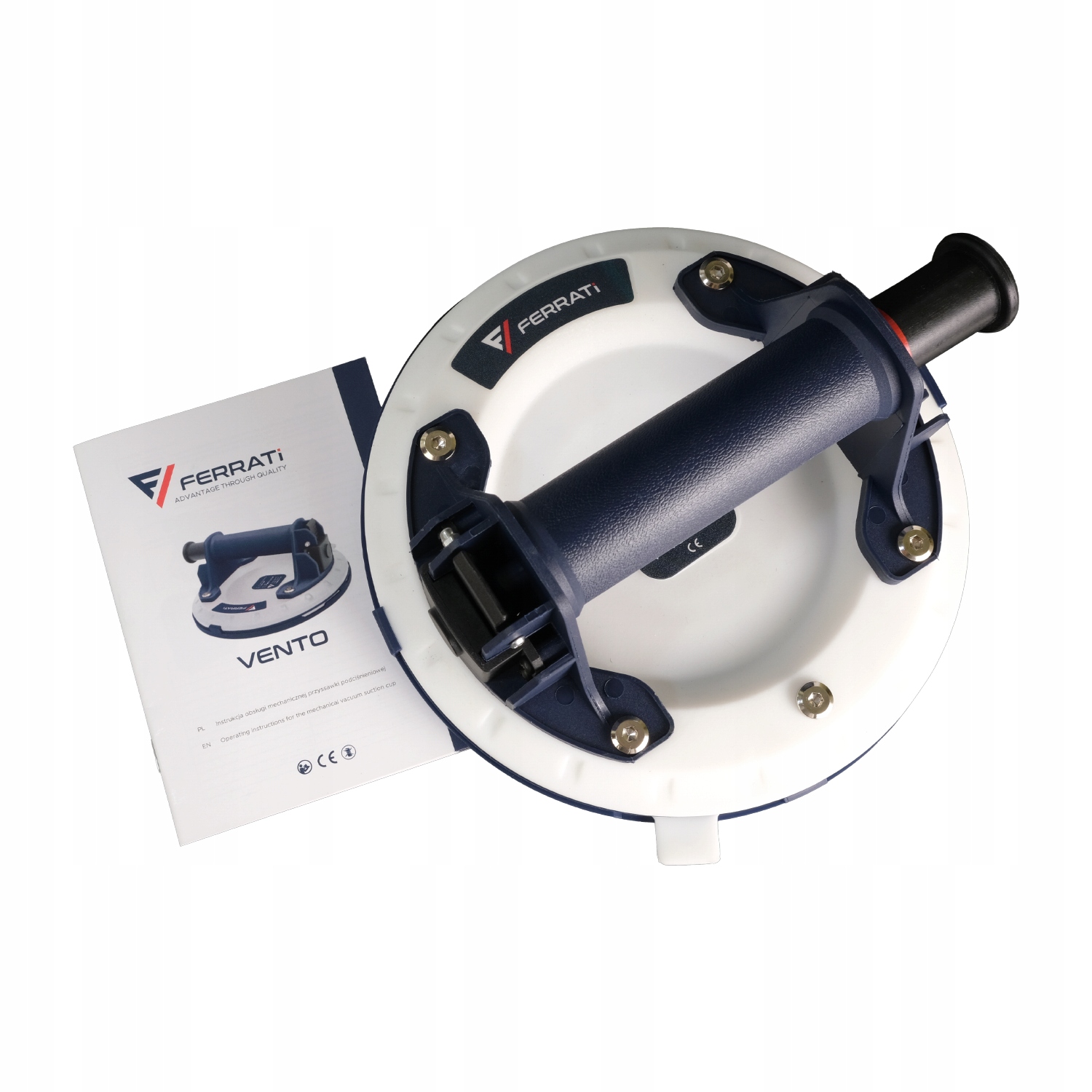 VENTO, это вакуумный держатель для плитки диаметром 200 мм с вакуумным насосом, разработанный на основе четырех ключевых качеств: высокого качества, эргономичности, минимального собственного веса и максимальной эффективности. Идеально сочетая их, он поддерживает транспортировку плит как с гладкой, так и с шероховатой поверхностью, дополнительно значительно повышая безопасность в зоне работы пользователя. Используемый силикон с добавлением синтетического каучука очень хорошо прилипает к поверхности и не оставляет следов. Кроме того, на присоске имеется выпускной клапан, который сбрасывает давление после перемещения пластины. Присоска поставляется в практичном футляре, обеспечивающем защиту и безопасную транспортировку изделия.