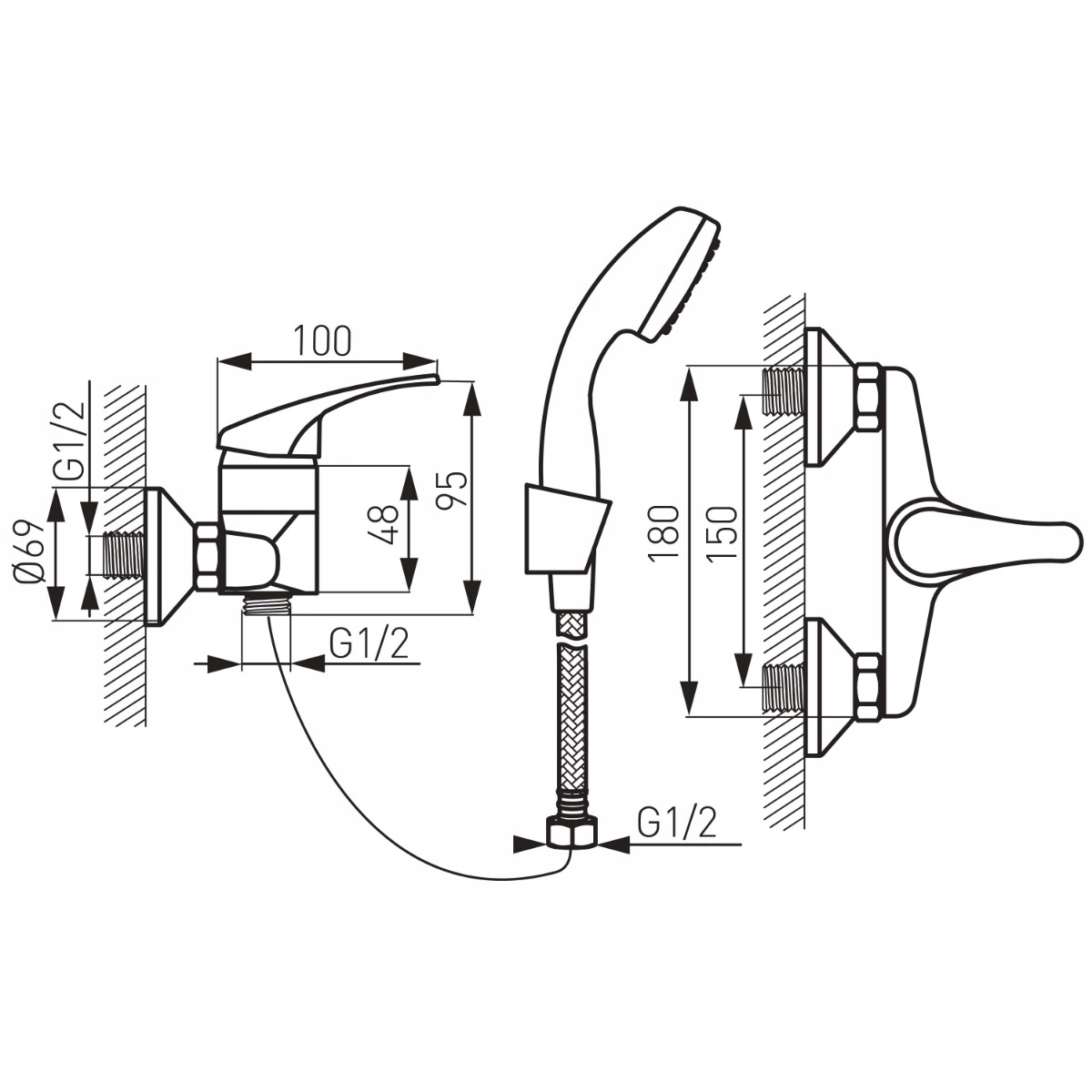 FERRO BASIC НАСТІННИЙ ЗМІШУВАЧ ДЛЯ ДУШУ, ХРОМ