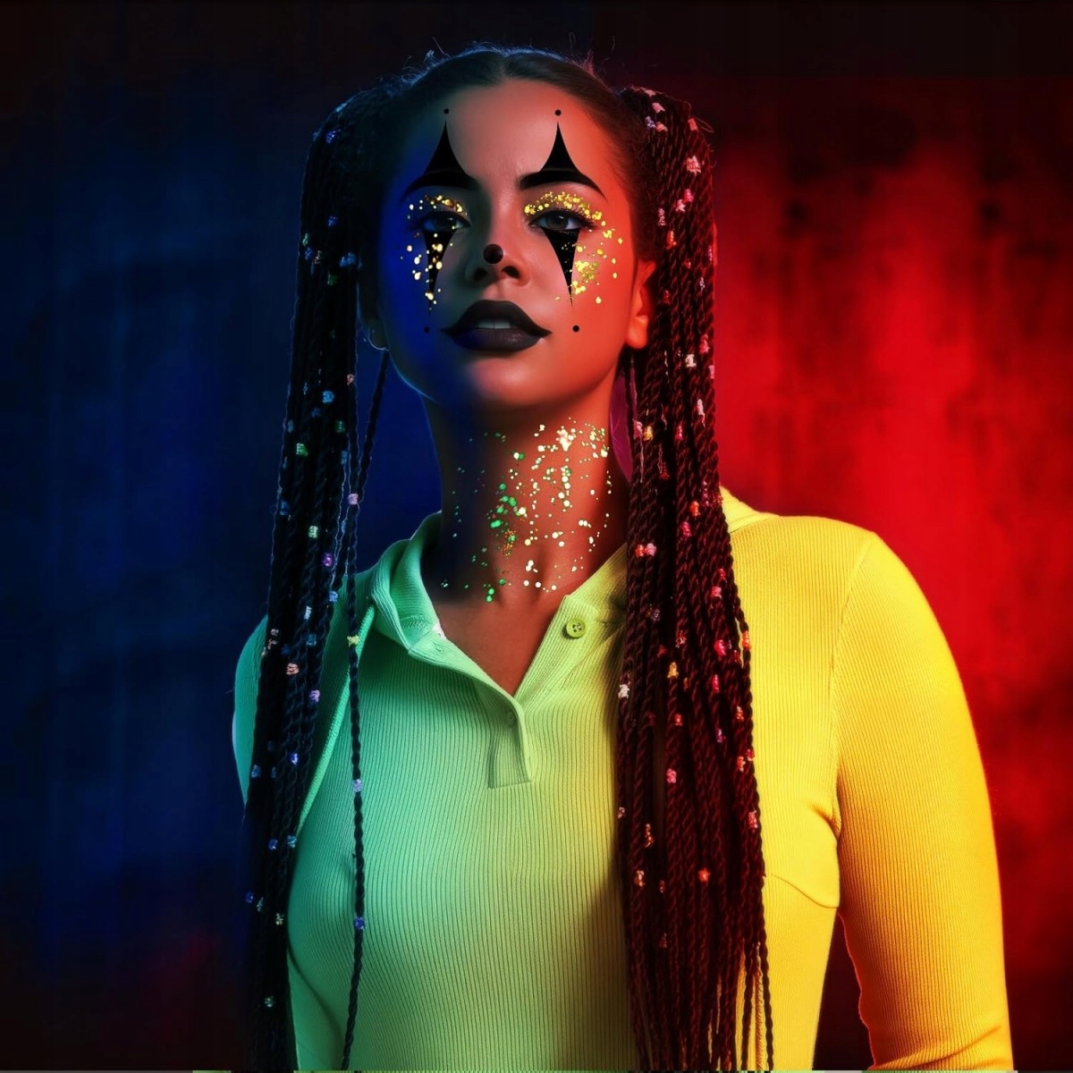 Блеск для лица является самоклеящимся. Перед нанесением смешайте его с базой или клеем для стойкого эффекта, который продержится всю ночь. Фестивальные гаджеты с флуоресцентными блестками легко удаляются водой или салфетками для снятия макияжа; они быстро и легко удаляются.