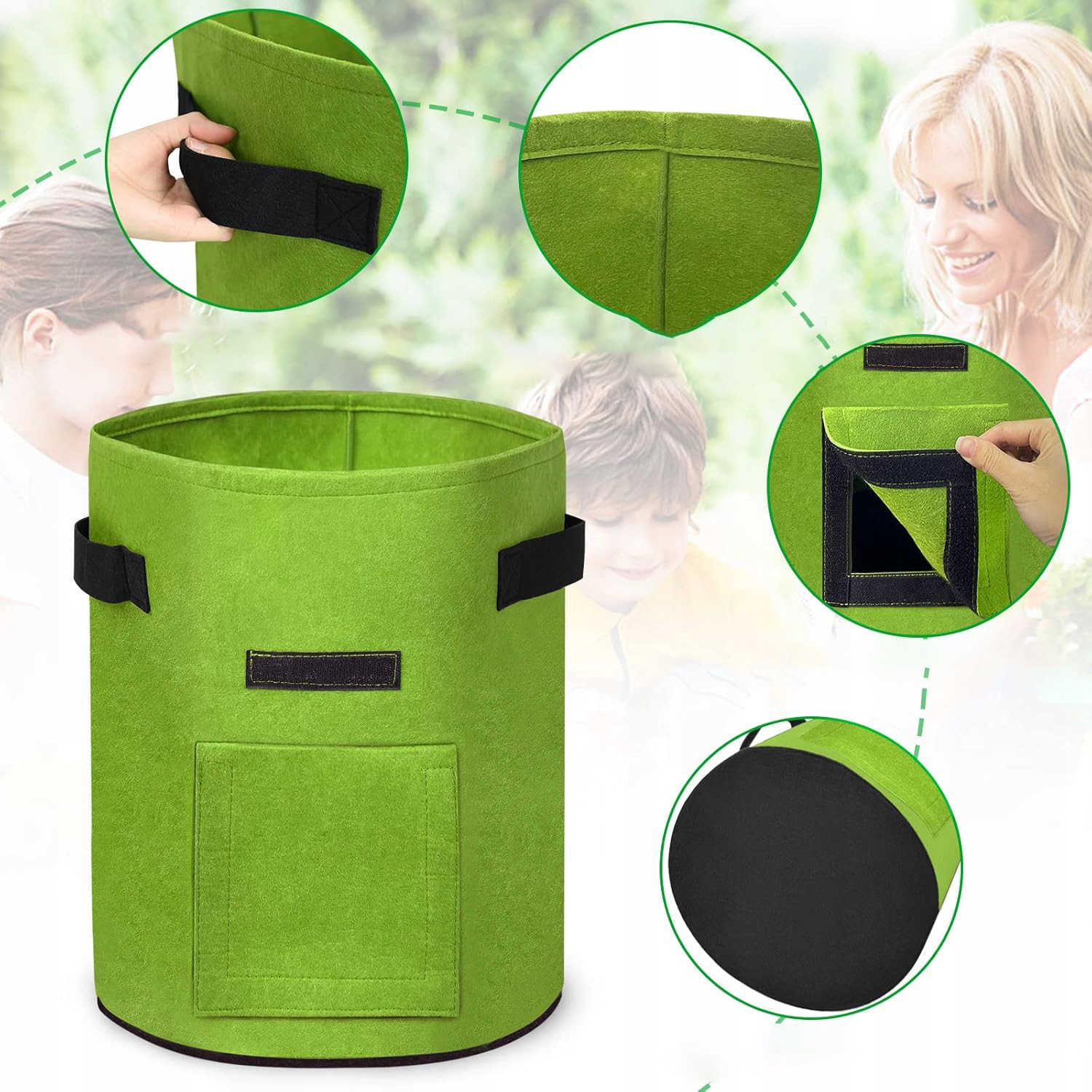 Сумка для размножения изготовлена из войлочной ткани, которая является экологически чистой, не -токсичной и подходит для многократного использования. Он водонепроницаемый и дышащий, а также идеально поддерживает рост растений и предотвращает плесень.