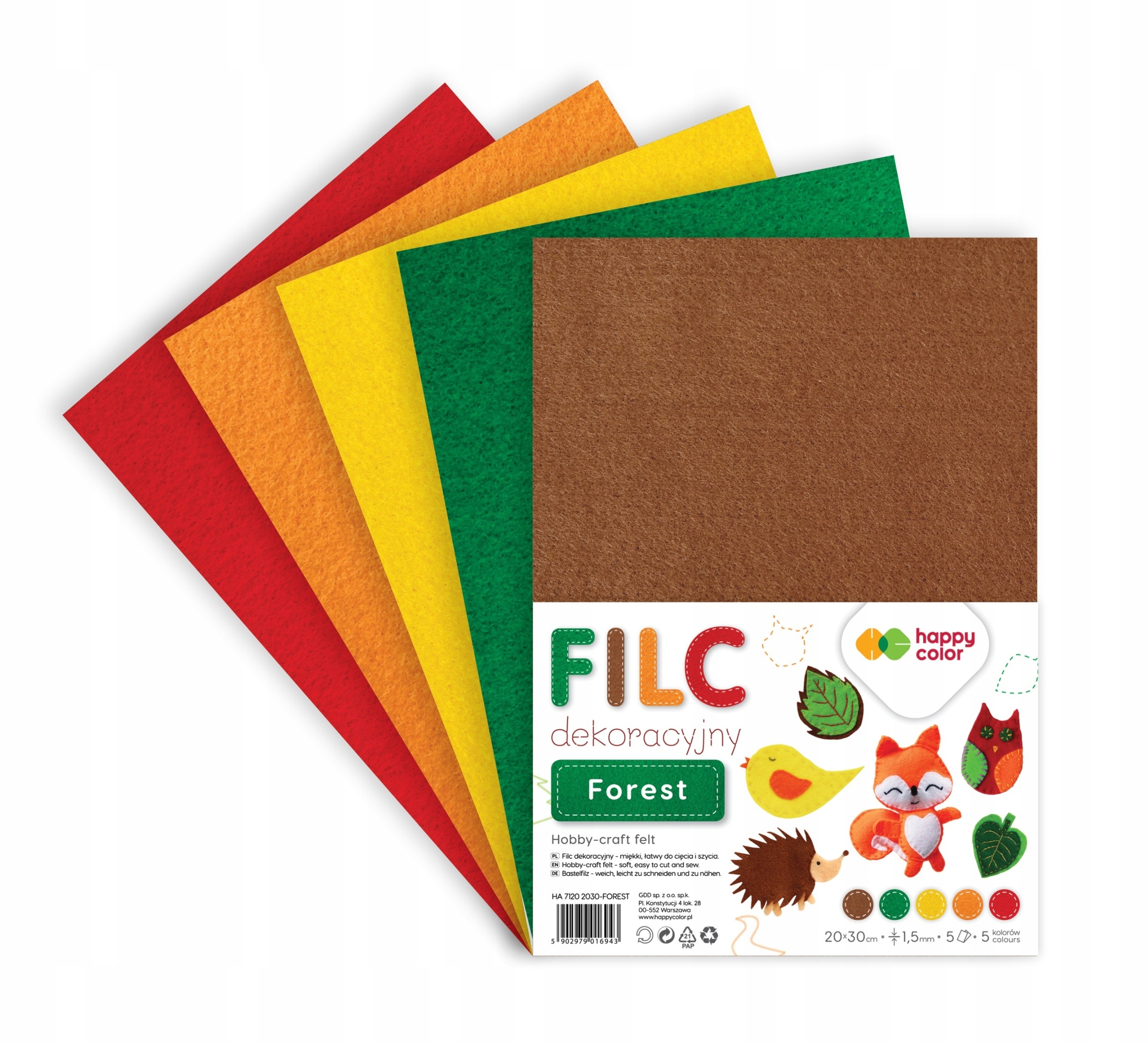 Фетр декоративний А4 5 аркушів Forest Happy Color