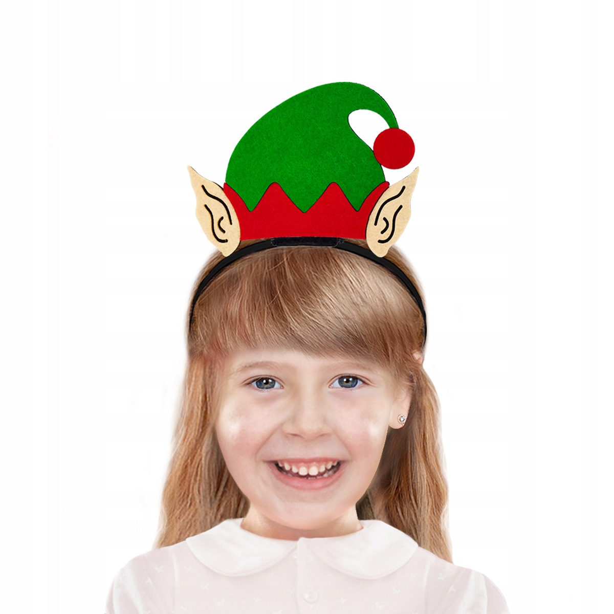 К новогоднему костюму отлично подойдет повязка с зелено-красной шапкой эльфа с ушками из фетра!