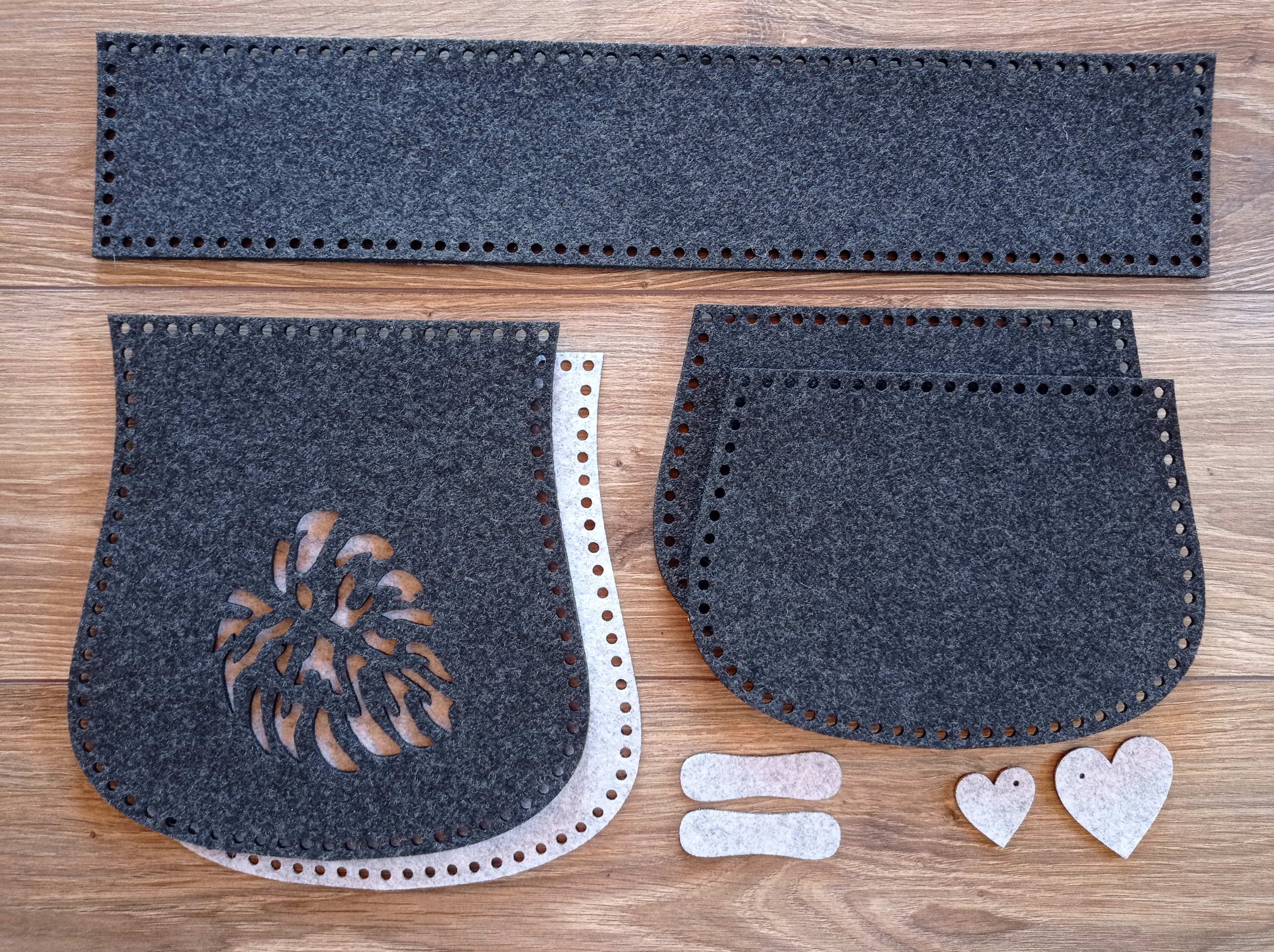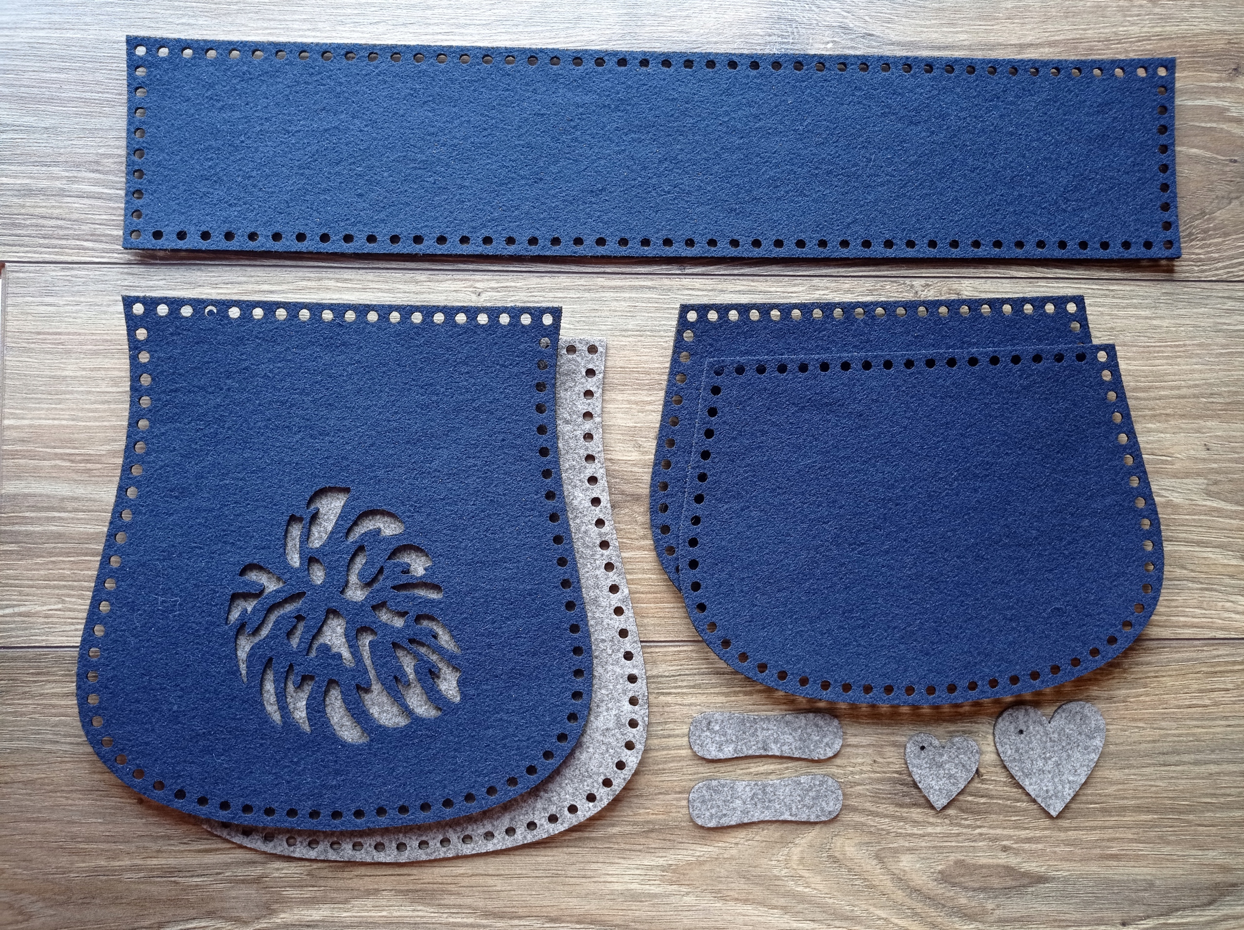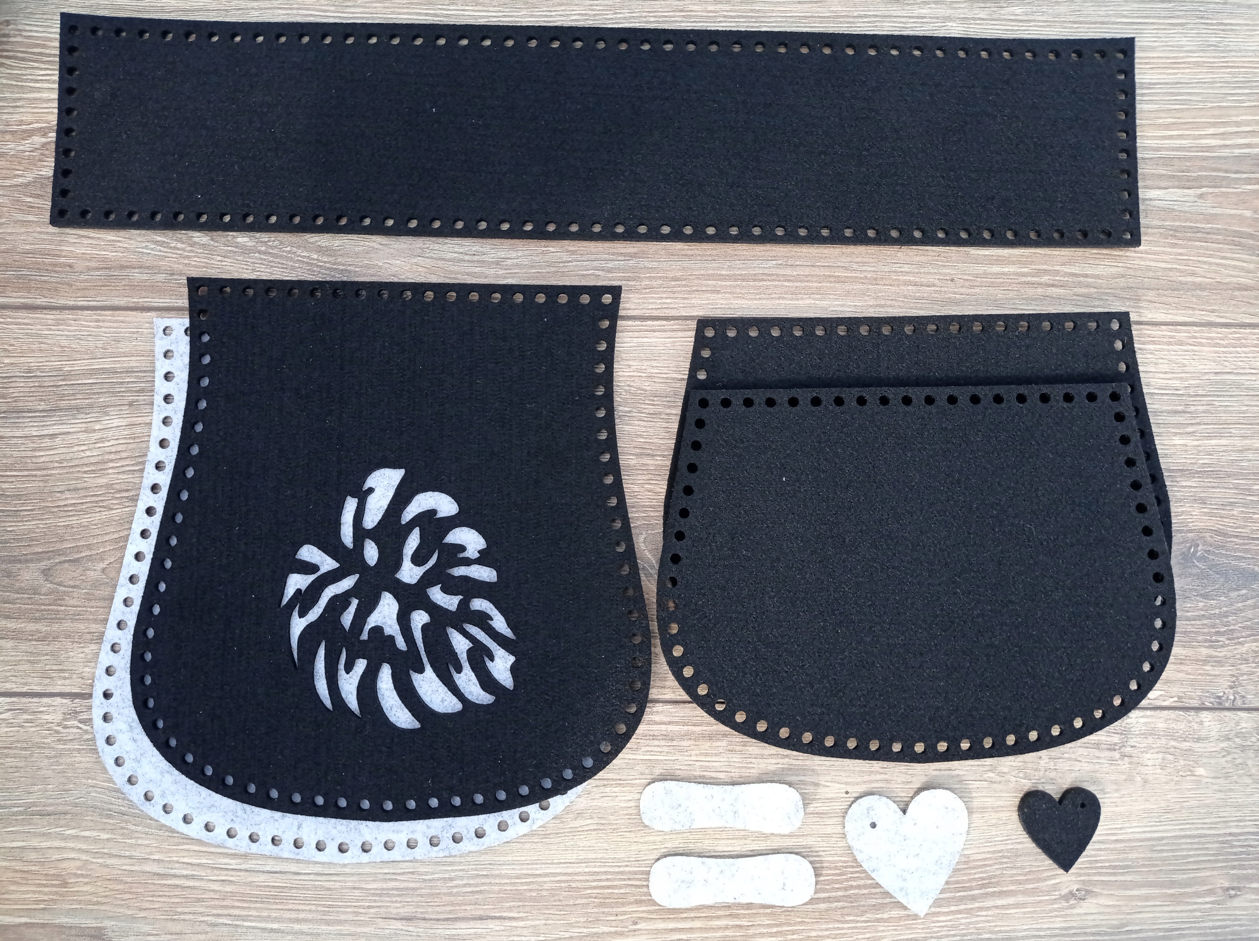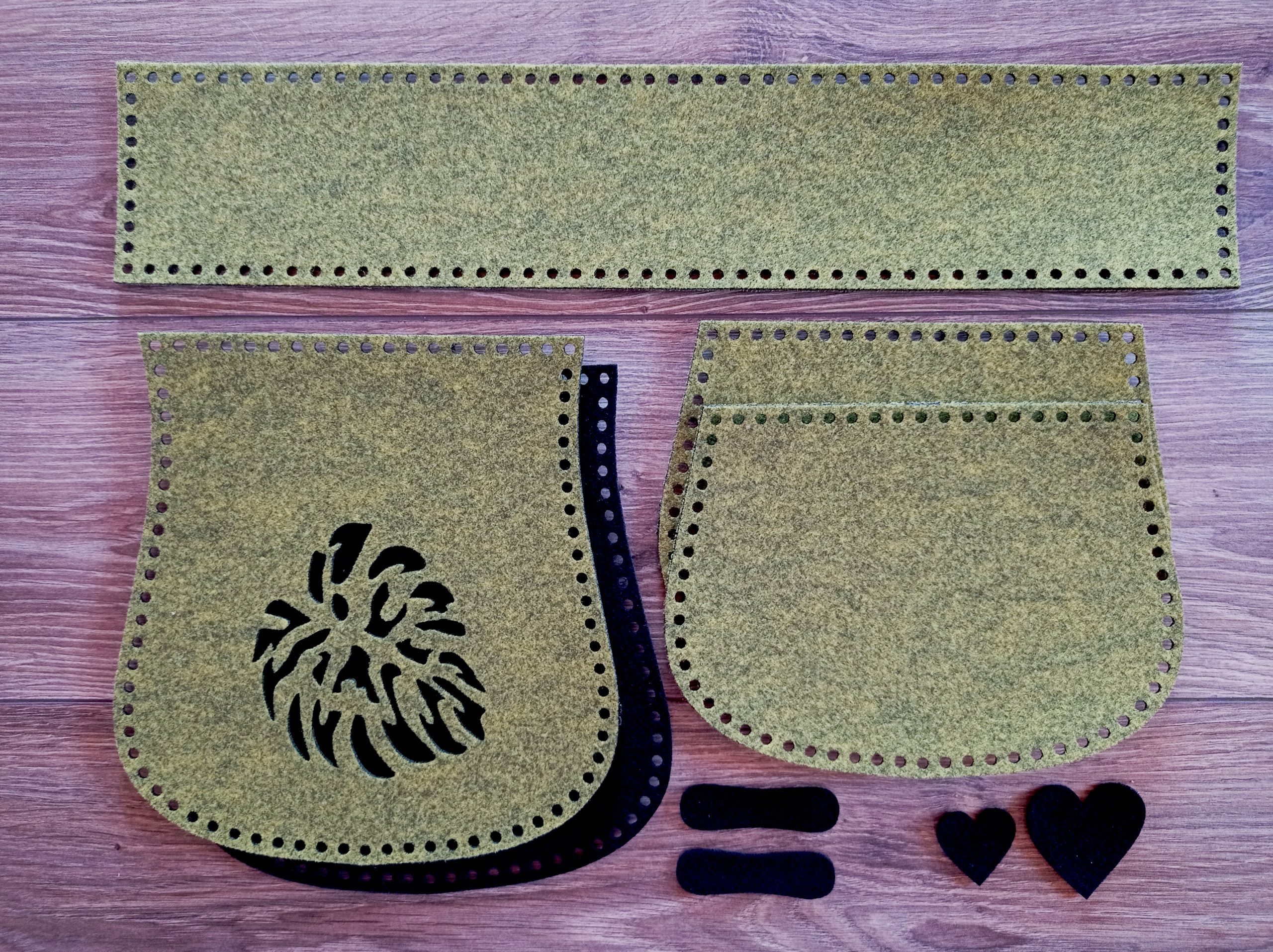 В комплект входят фетровые основы, необходимые для создания сумки: