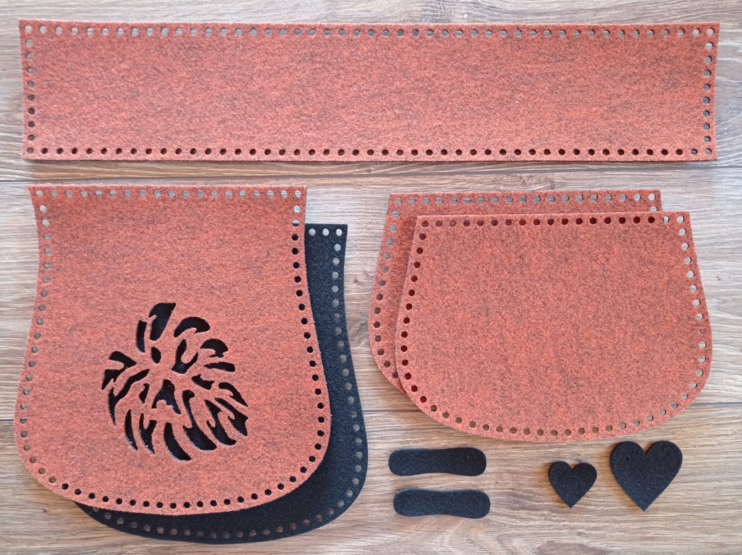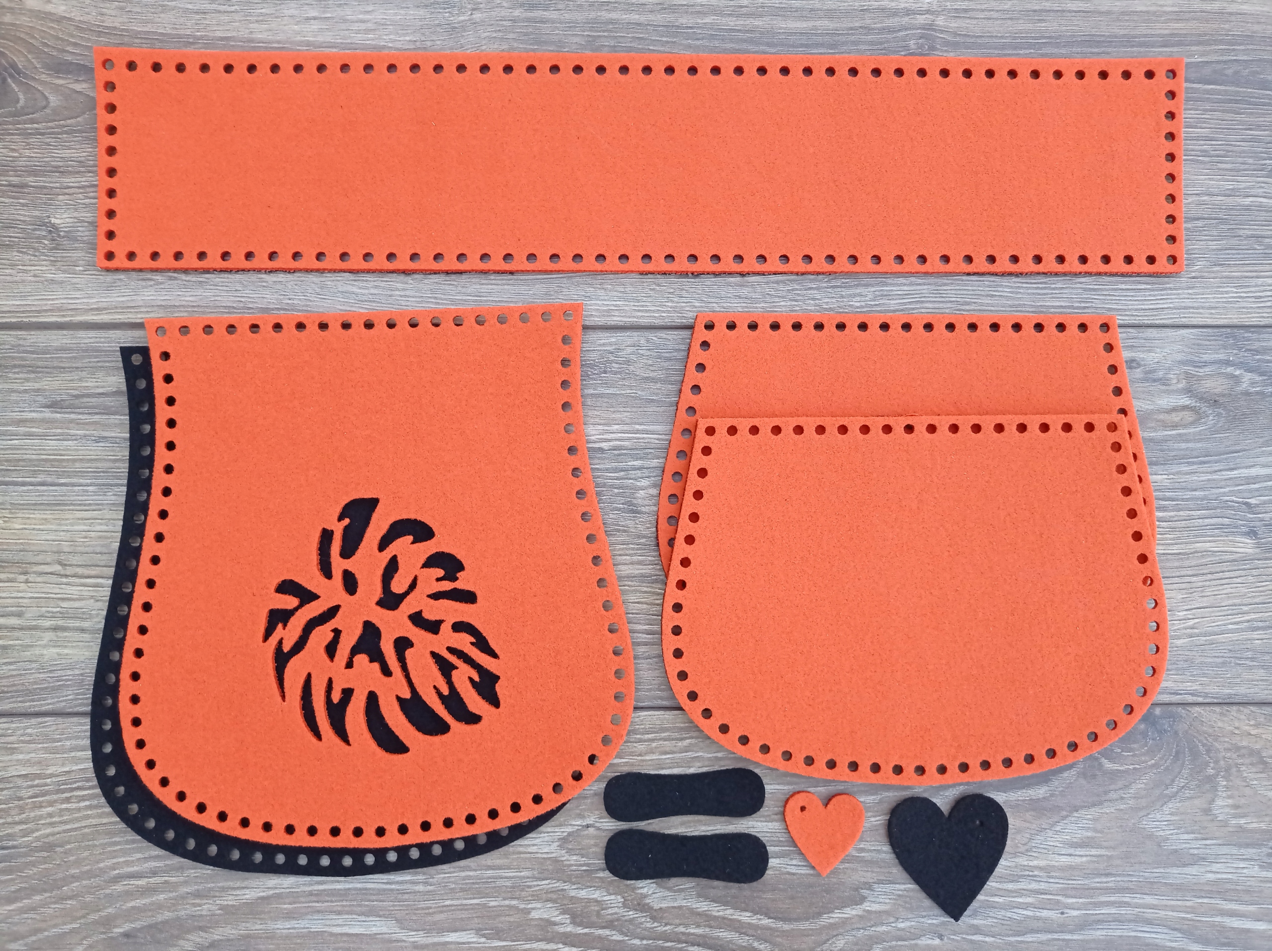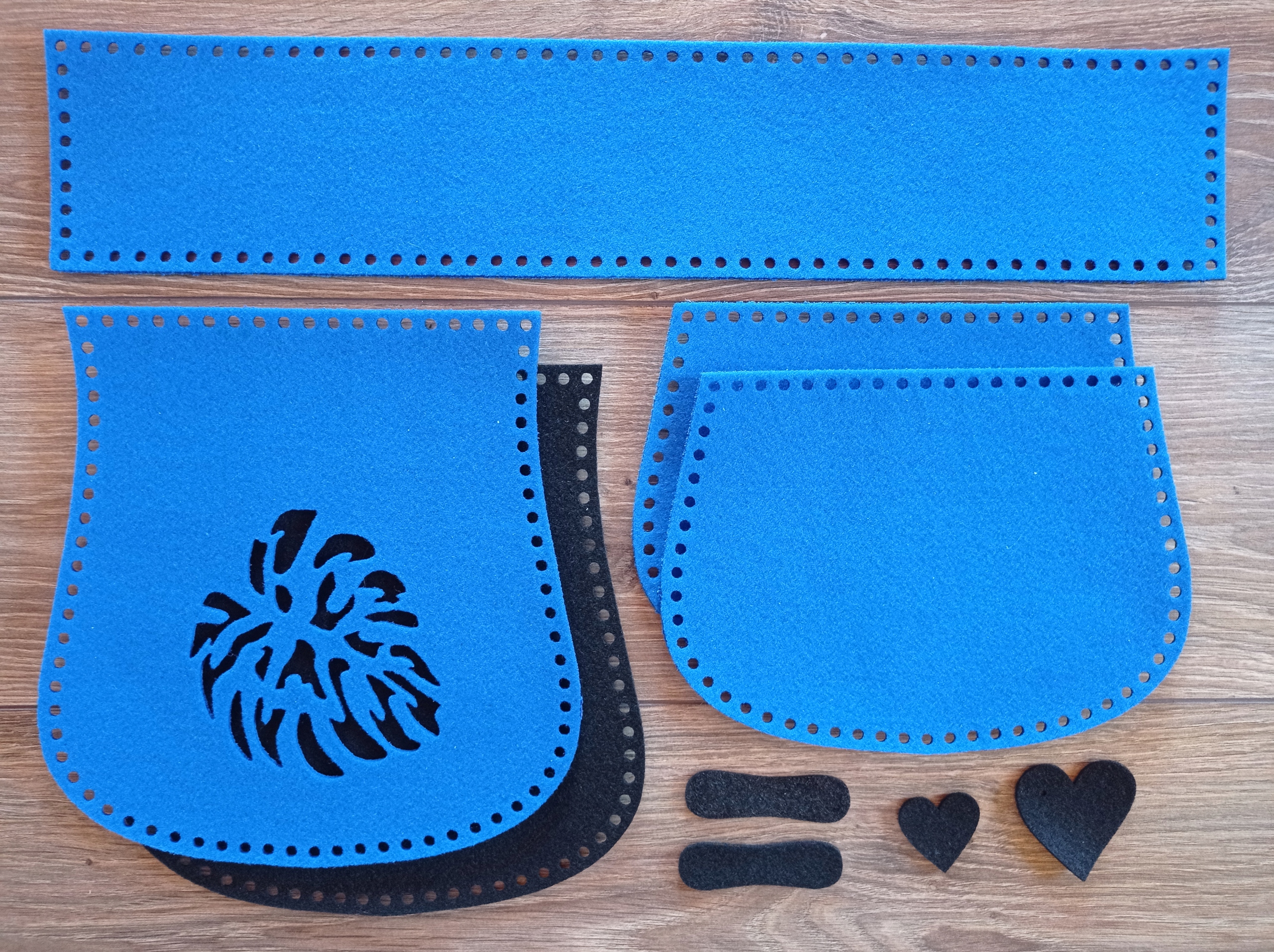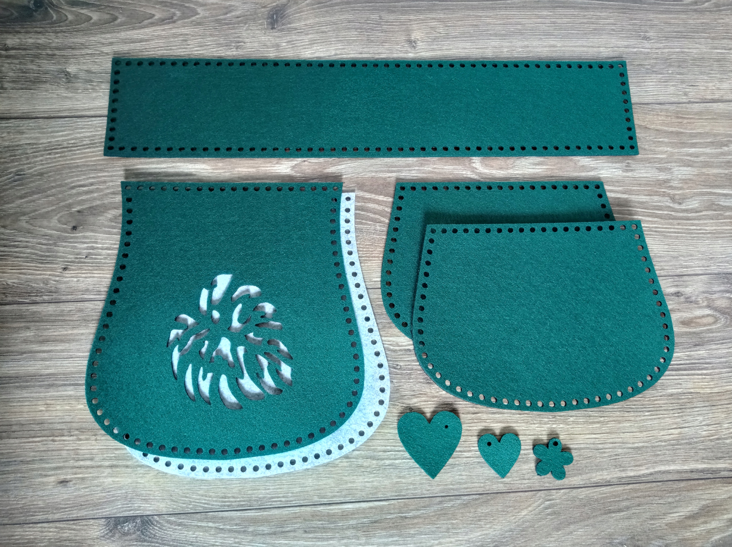 В комплект входят фетровые основы, необходимые для создания сумки: