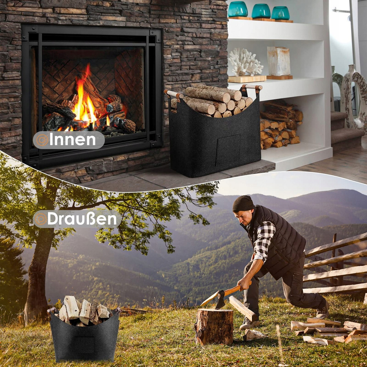 - ✔️Очень большая фетровая сумка для транспортировки может вместить много дров.