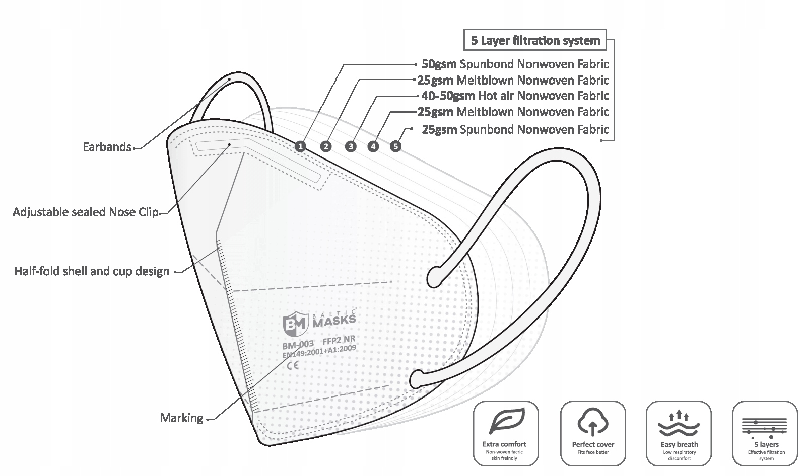NR – одноразовая полумаска, рассчитанная на ношение в течение максимум 8 часов, не подлежит повторному ношению