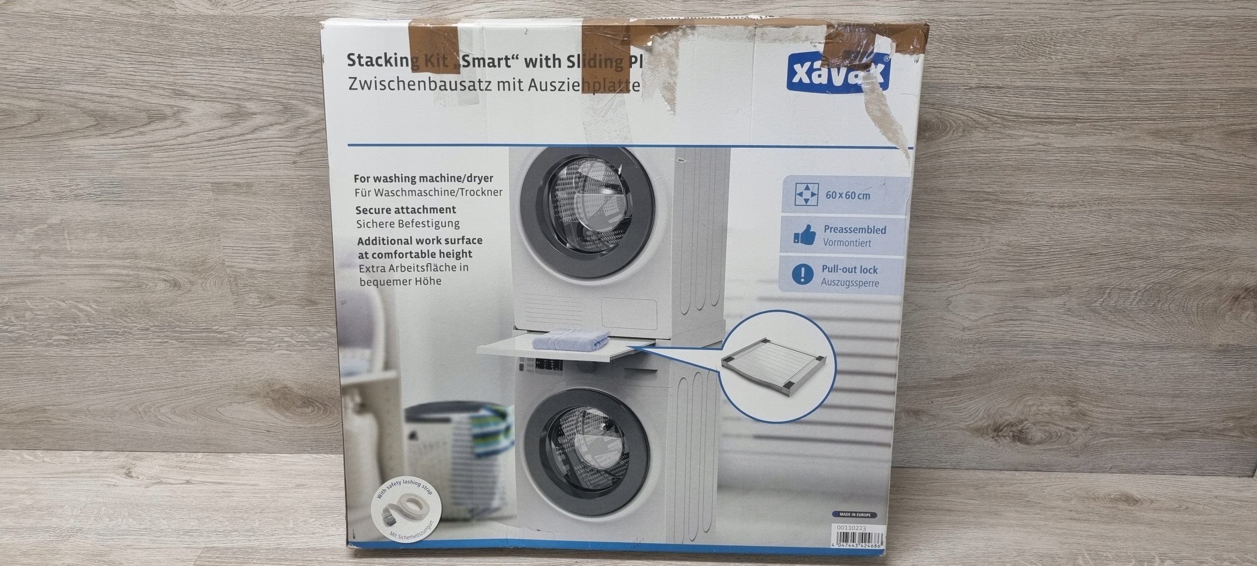- Рамка универсальна для стиральных и сушильных машин различных производителей шириной 60 см. Сушилку можно разместить как на стандартных, так и на тонких стиральных машинах глубиной 45 см. Приборы в любом случае остаются полностью функциональными – даже стиральные машины со скошенной или изогнутой передней панелью или с ящиками для моющих средств, выступающими в крышку.
