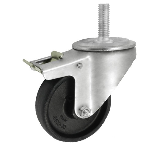 Колесо из термостойкого пластика имеет единый корпус из литьевого полиамида PA 66, который содержит 30% стекловолокна, что влияет на его термостабилизацию и обеспечивает высокую термостойкость. Эти колеса черного цвета, имеют подшипник скольжения, характеризуются высокой устойчивостью к истиранию и температуре от -40 до +250°С.