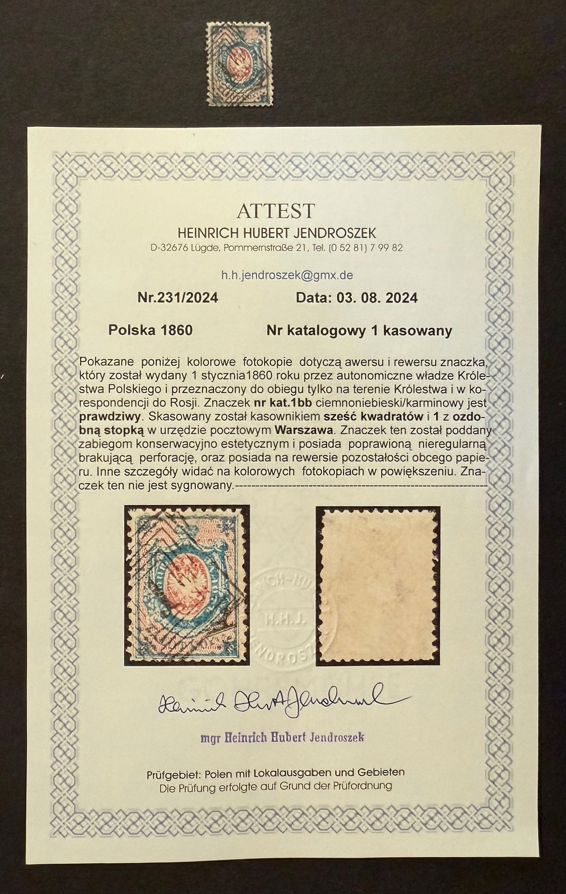 Королевство Польши Fi 1 Bb - темно -синий /кармина, значение Saxa с валидатором № 1 - шесть квадратов "Ozoda Foot" Варшава центрально и обычно отраженное Casker (доплата от 50-100% стоимости), очень хорошее состояние, каталог. = PLN 6700 = PLN 6700 + доплата 50 % мин для центрально и разборчиво отраженного ANKLER = Ценность этой копии составляет около 11 000 человек - редкость для знатоков Королевства Польши за платеж, который я жду 7 дней с даты конца аукциона, после того, как я отменен, и товар идет на продажу