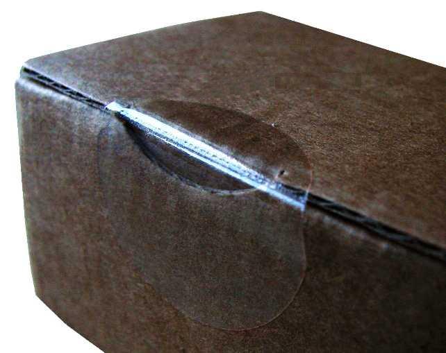 Односторонние клейкие наклейки используются в качестве защитной пломбы или закрывающего вида фольги и бумажных упаковок. Клейкий круг помещается на разрезанную силиконовую бумагу, что позволяет удобно отрывать форму от поверхности.