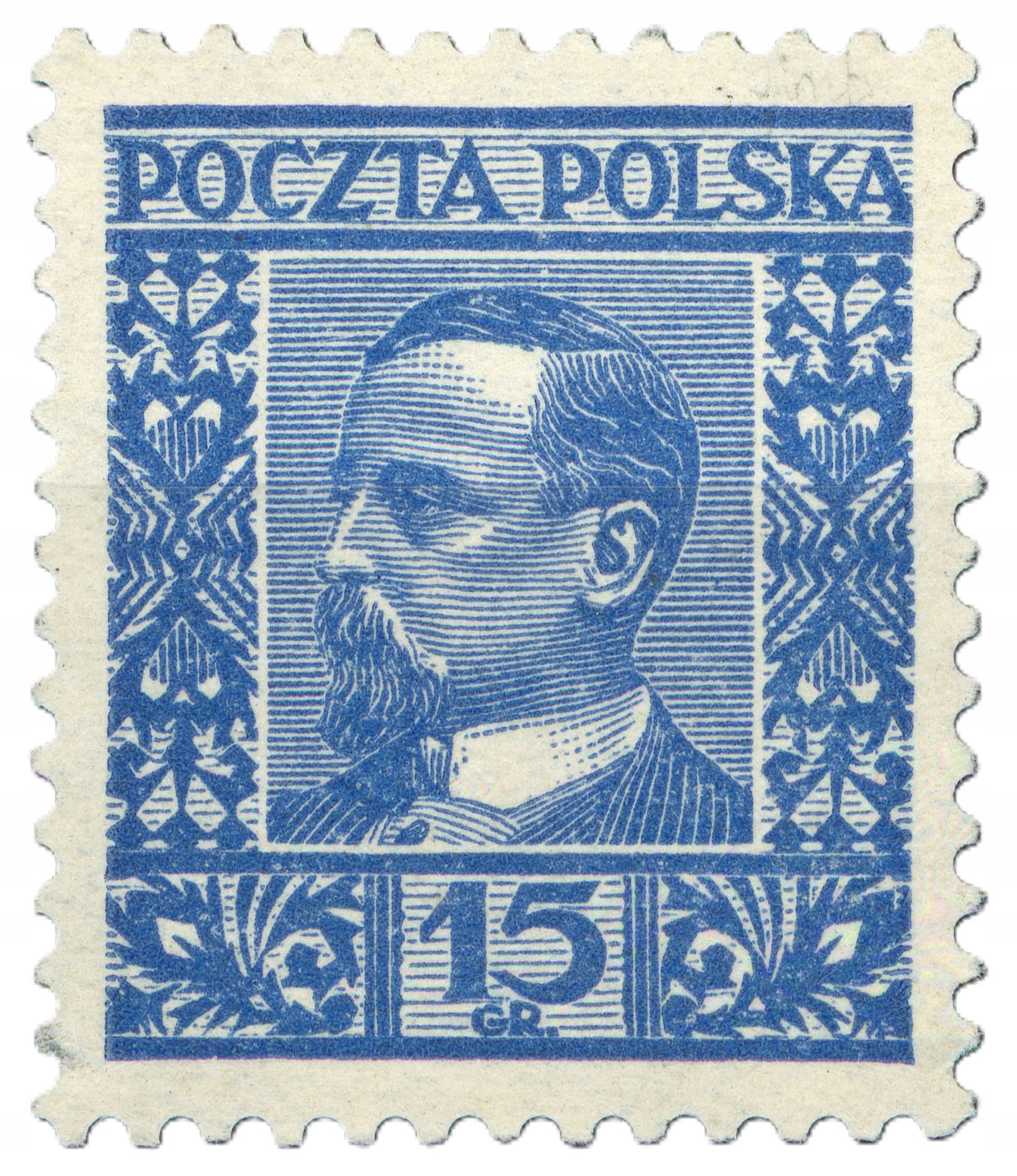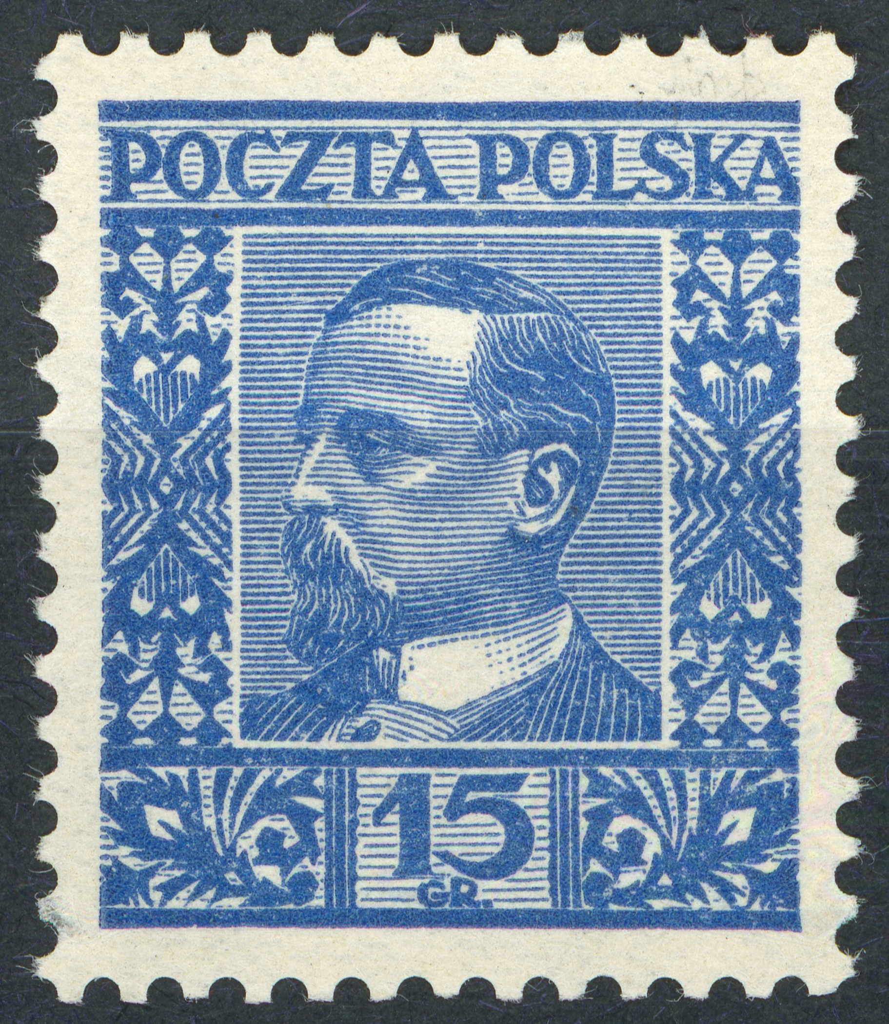 Предмет продажи — почтовая марка Fi. 240а – 15 грошей синий под названием: Почтение памяти Генрика Сенкевича. Марка гарантирована и описана г-ном Ежи Валочой.