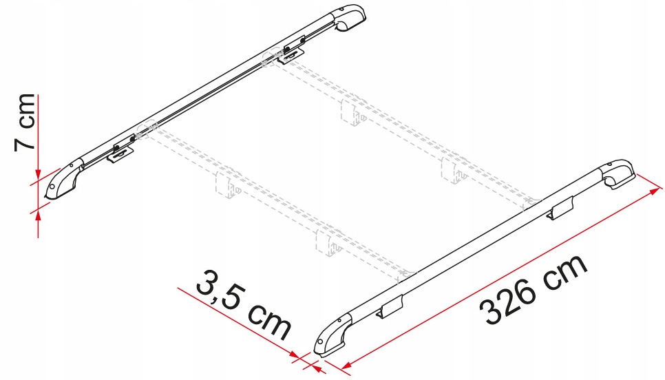 - Система багажников на крыше, состоящая из 2 продольных балок, которые можно укорачивать.
