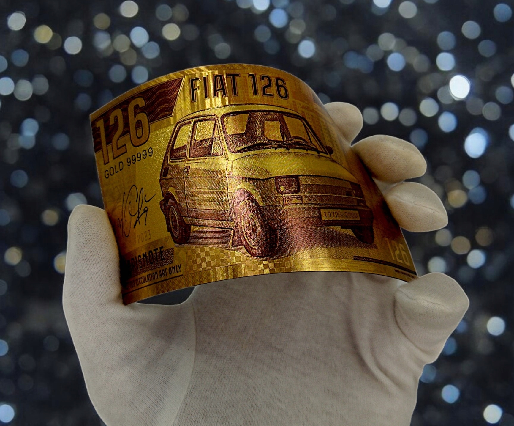 FIAT 126P MALUCH Модна позолочена банкнота ЧУДОВО ДЛЯ КОЛЕКЦІОНЕРА