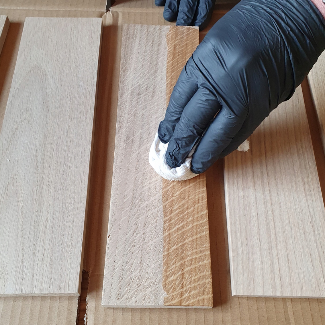Supreme Wax наносится хлопчатобумажной тканью, кистью, губкой или стальной ватой. Через несколько минут поверхность можно полировать. Поверхности, обработанные шеллаком, мы полируем деликатной хлопчатобумажной тканью, другие поверхности - хлопчатобумажной тканью или - если мы хотим получить матовую поверхность - стальной ватой 0000. В случае постоянного производства или больших поверхностей рекомендуется использовать имеющиеся в нашем предложении кисти для нанесения и полировки воска Fiddes. Возможно, добавление второго слоя сделает цвет более глубоким в случае цветных восков и увеличит блеск. Правильно нанесенный и отполированный воск создает покрытие, устойчивое к отпечаткам пальцев и истиранию.